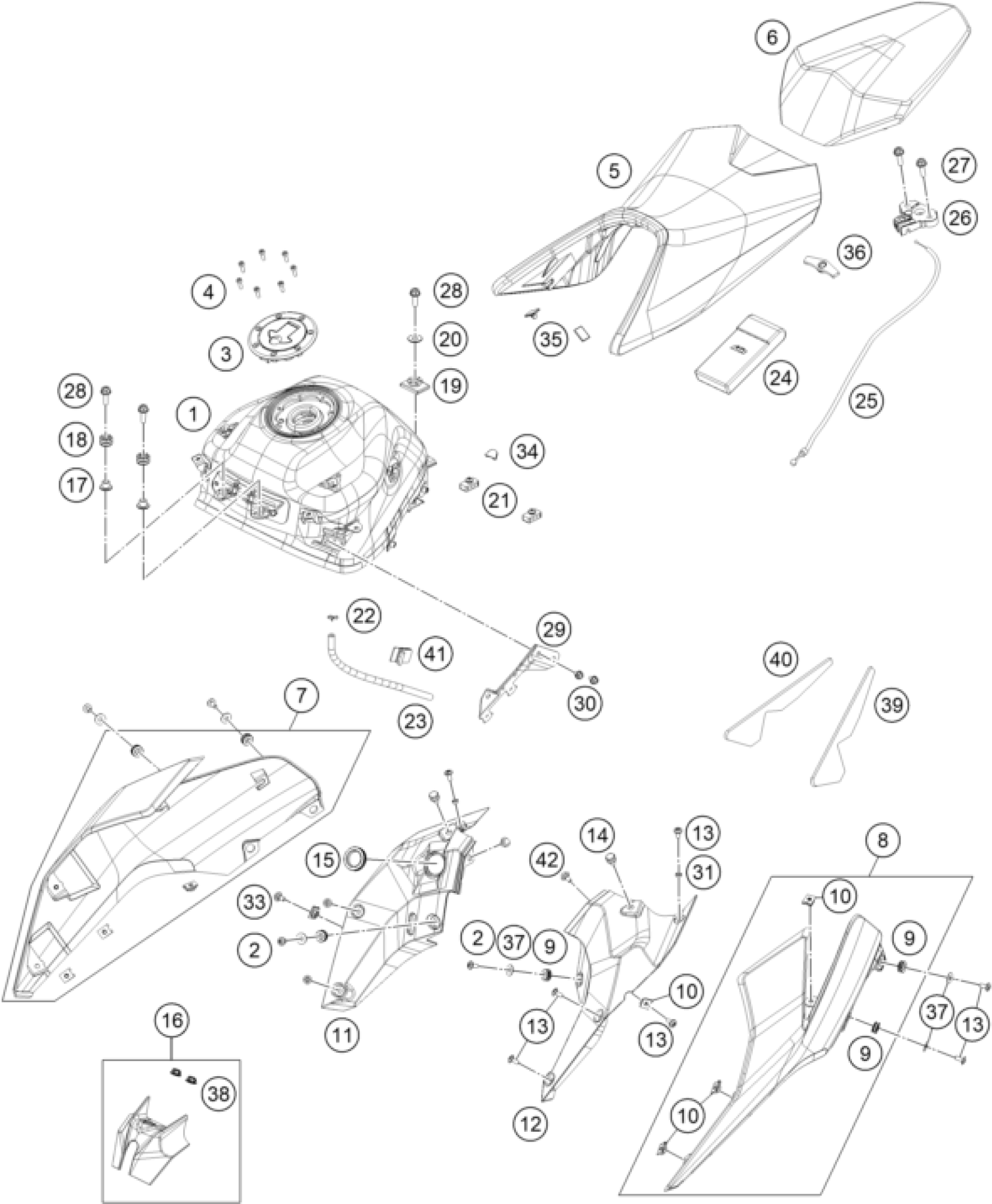 KTM 250 Duke, white - B.D. 17 <2017 TANK, SEAT Diagram