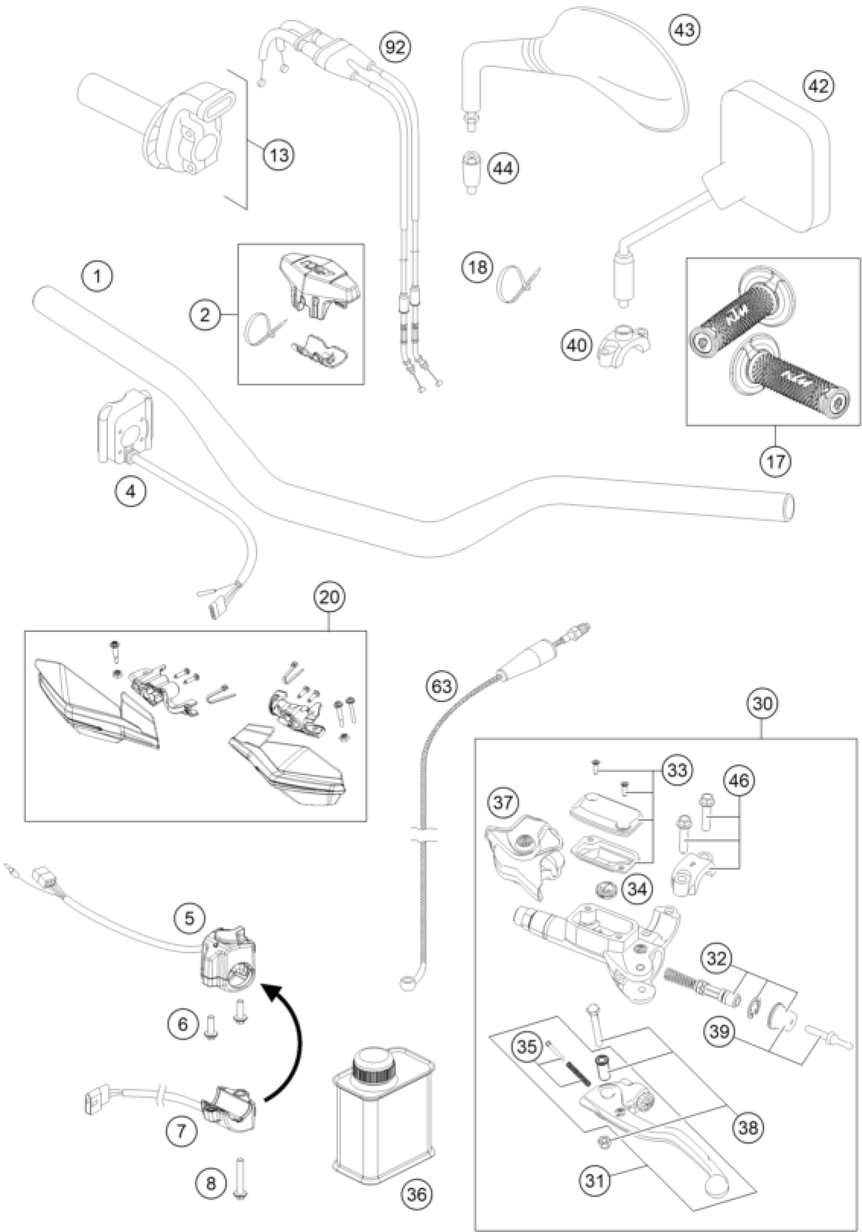 KTM 250 EXC-F 2016 HANDLEBAR, CONTROLS Diagram