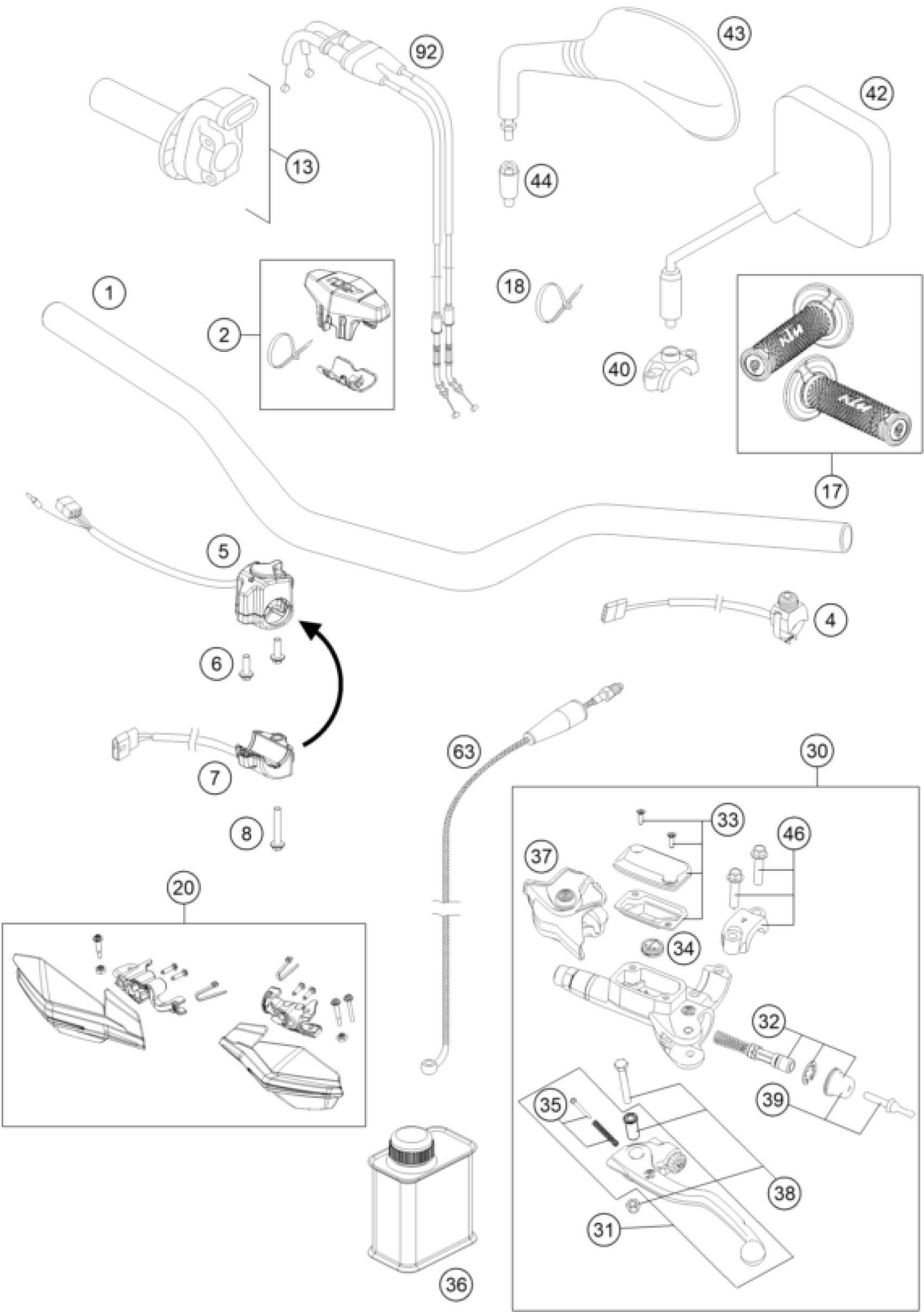 KTM 250 EXC-F 2016 HANDLEBAR, CONTROLS Diagram