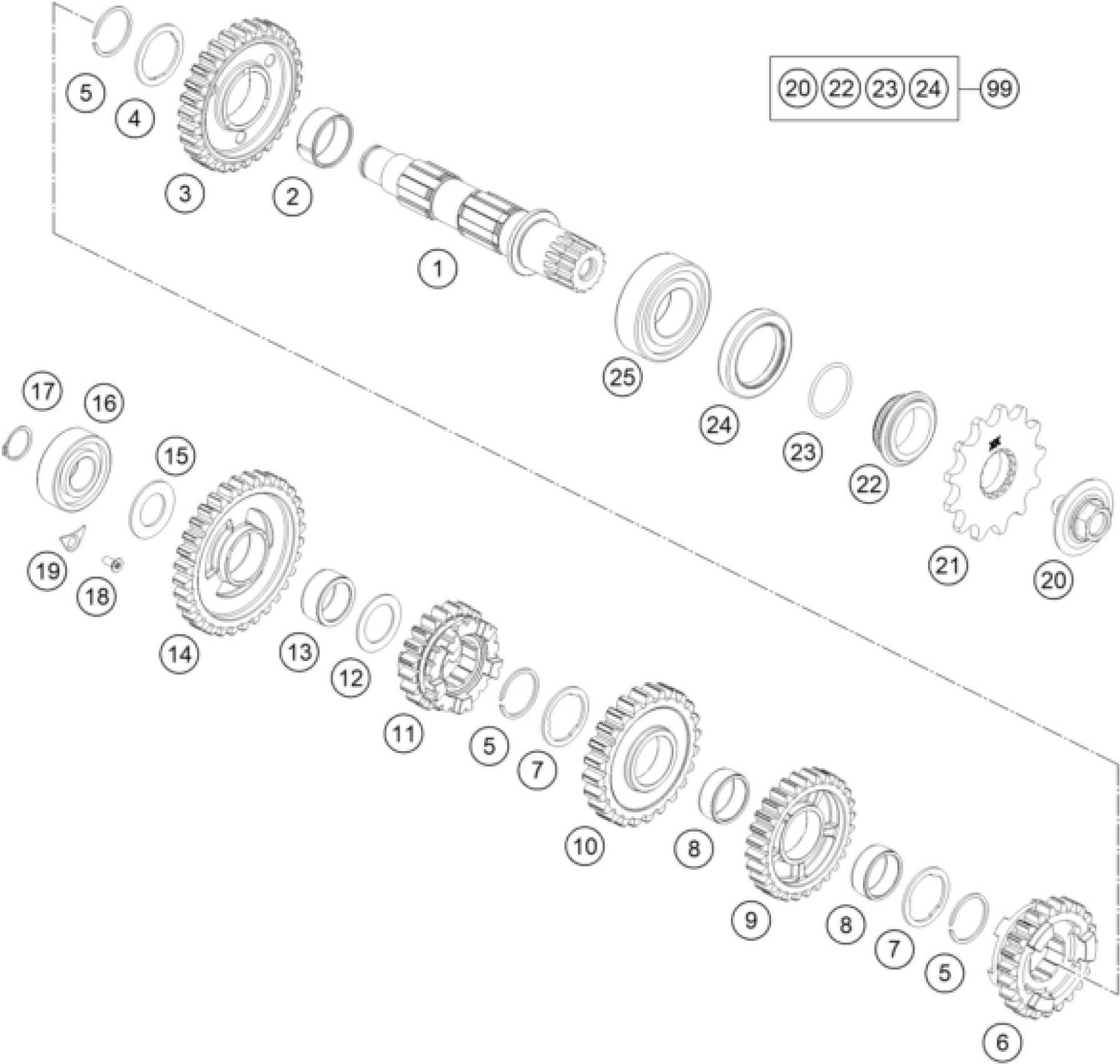 KTM 250 EXC-F 2019 TRANSMISSION II - COUNTERSHAFT Diagram