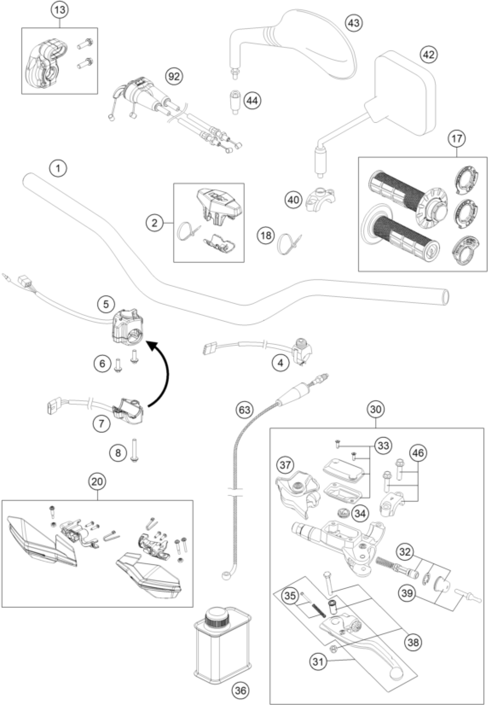 KTM 250 EXC-F CKD 2017 HANDLEBAR, CONTROLS Diagram