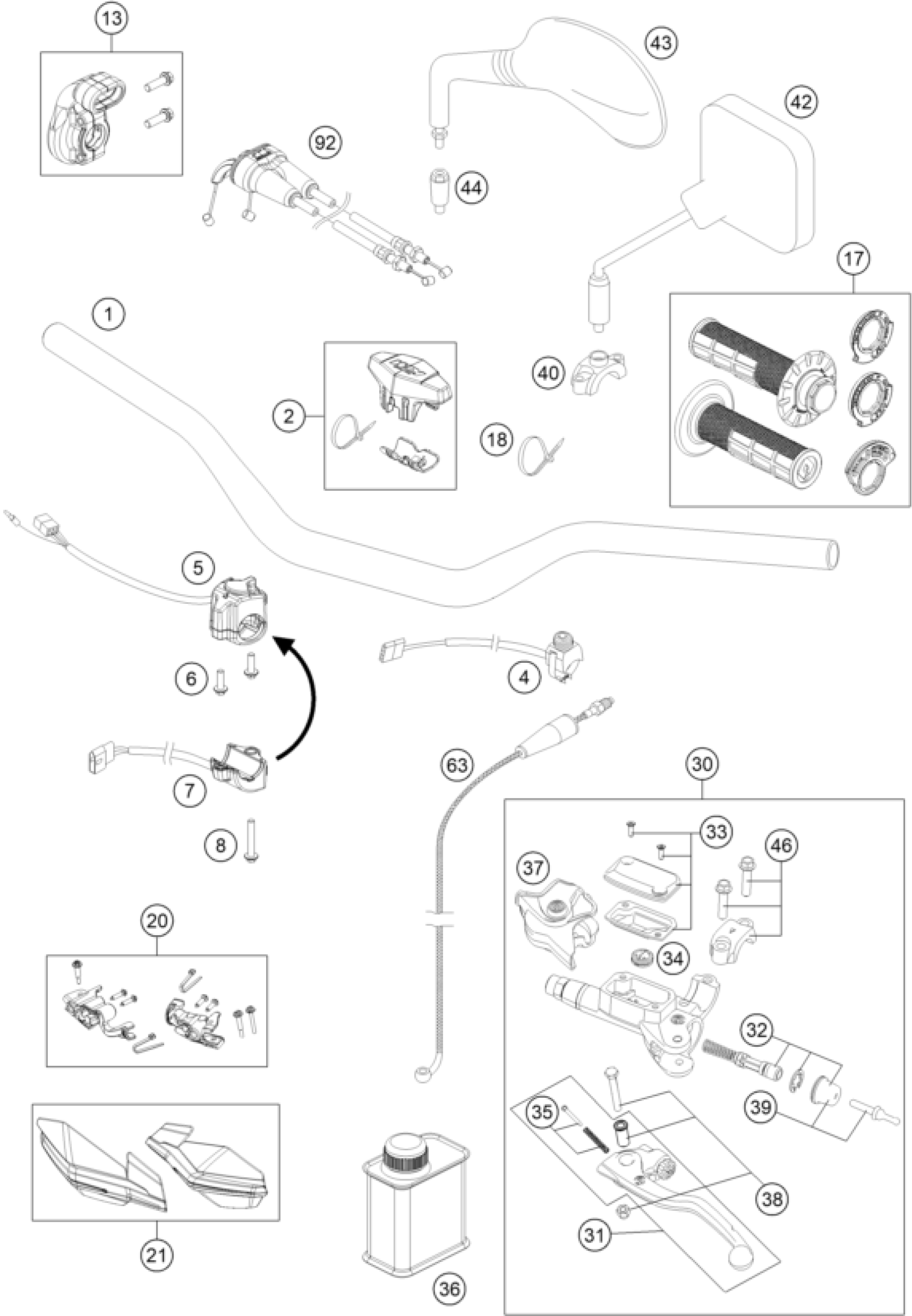 KTM 250 EXC-F CKD 2023 HANDLEBAR, CONTROLS Diagram