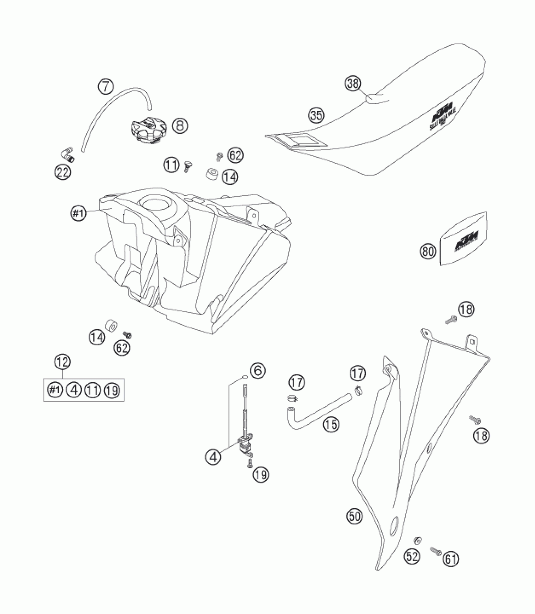 KTM 250 EXC-F SIX DAYS 2007 TANK, SEAT Diagram