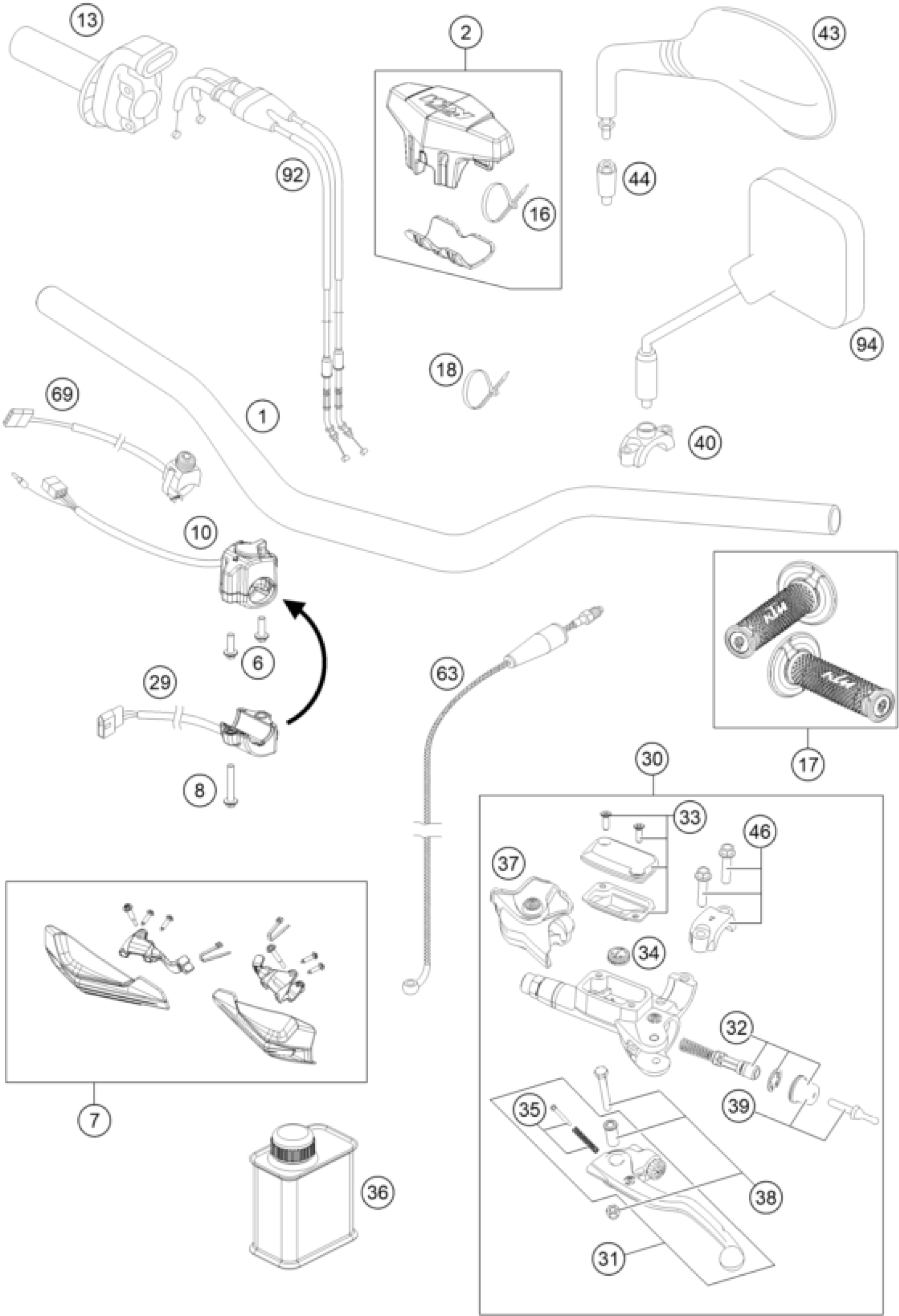 KTM 250 EXC-F SIX DAYS 2015 HANDLEBAR, CONTROLS Diagram