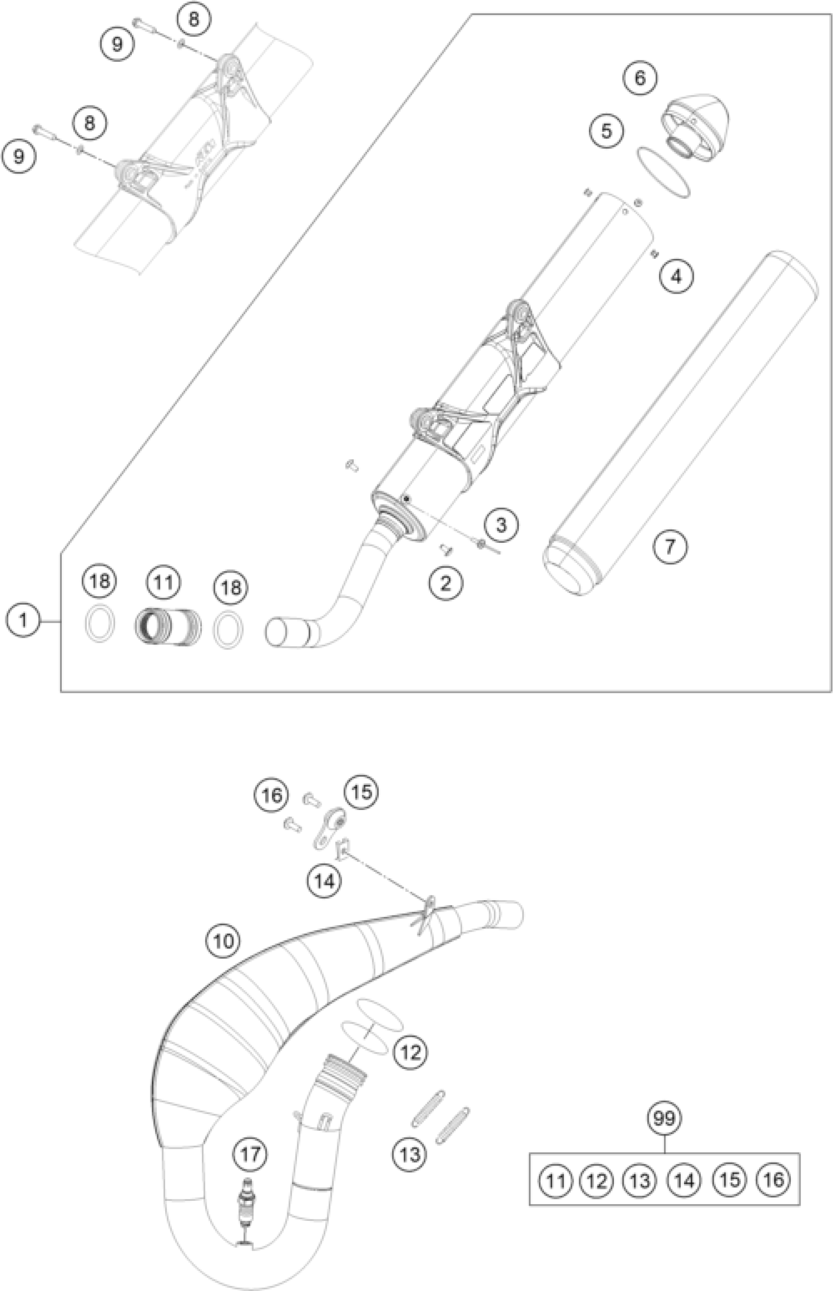 KTM 250 EXC TPI 2018 EXHAUST SYSTEM Diagram