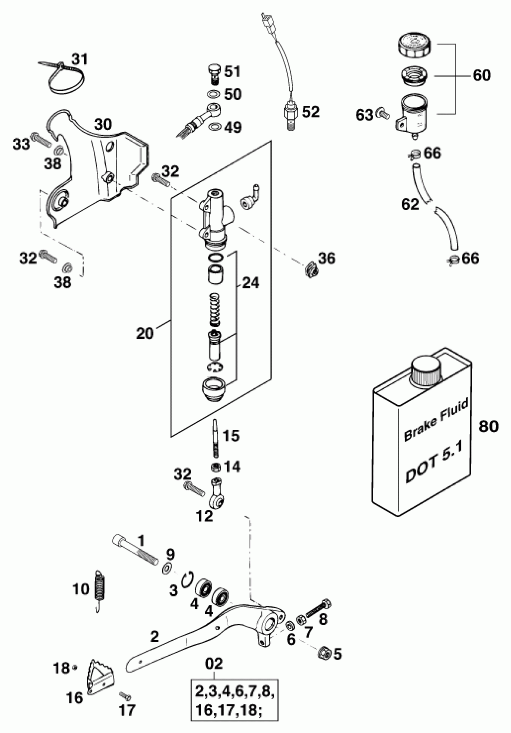 KTM 250 MXC 2000 REAR BRAKE CONTROL Diagram