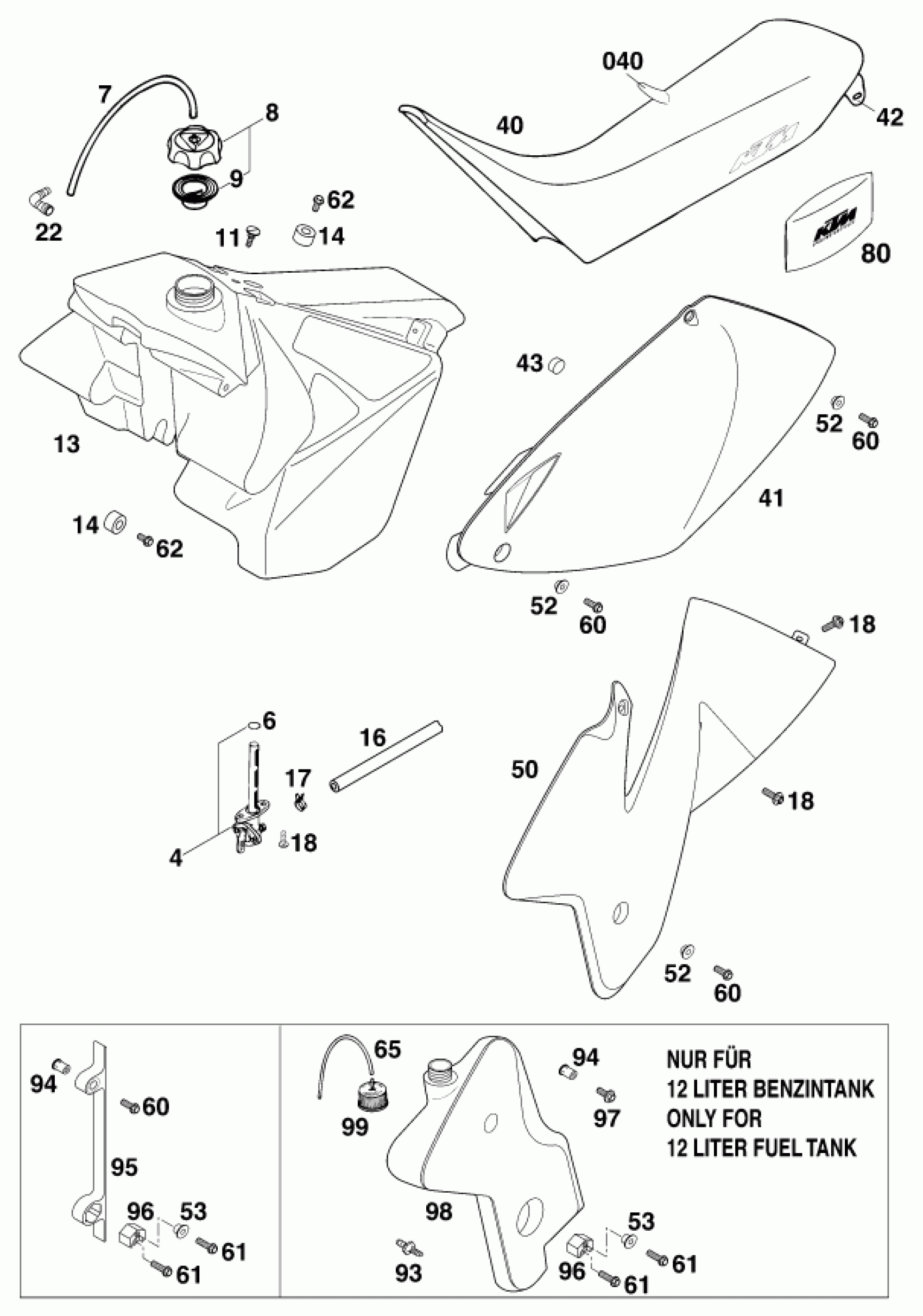 KTM 250 MXC 2000 TANK, SEAT Diagram