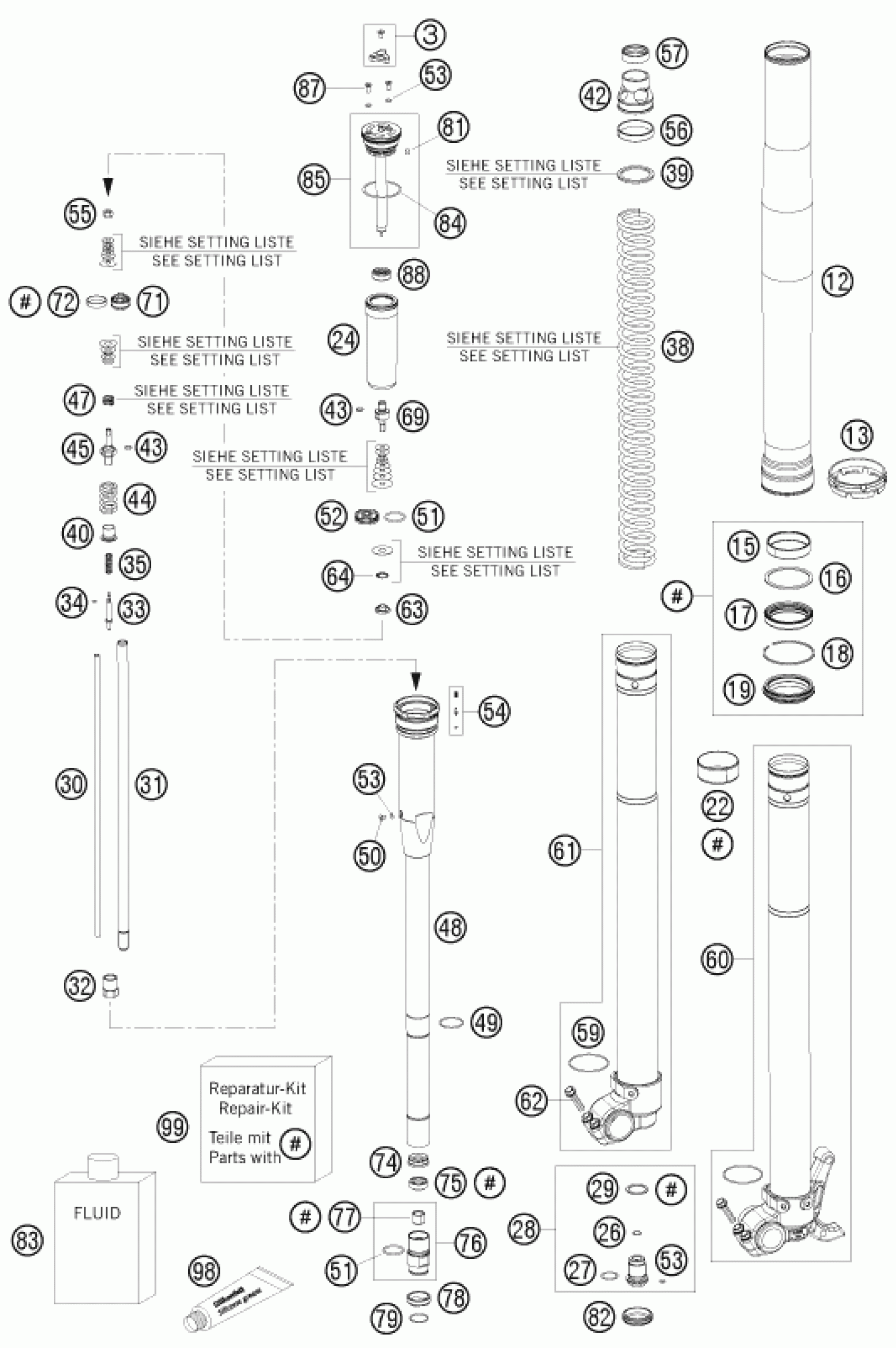 KTM 250 XC-F 2009 FRONT FORK DISASSEMBLED Diagram