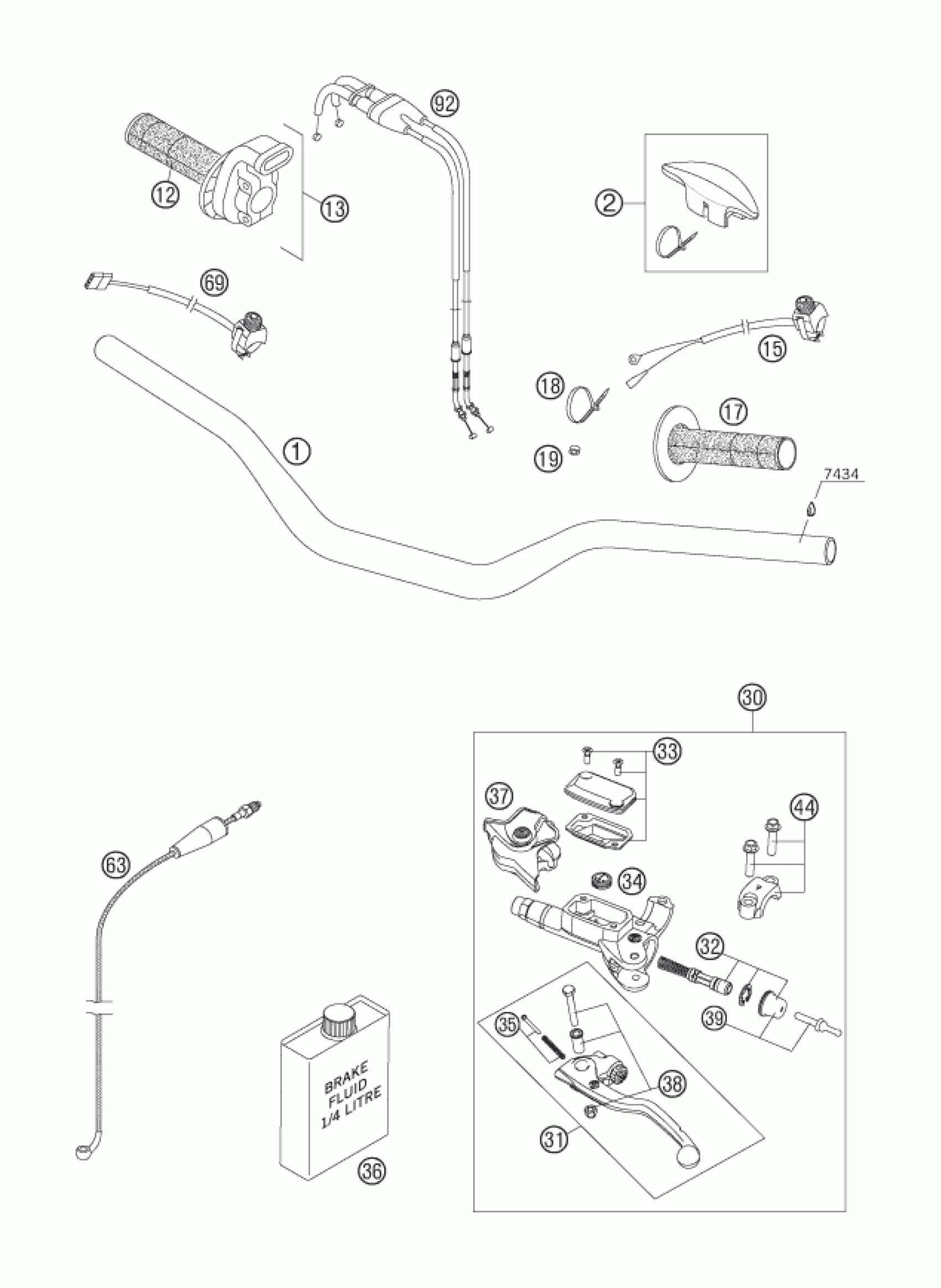 KTM 250 XCF-W 2006 HANDLEBAR, CONTROLS Diagram
