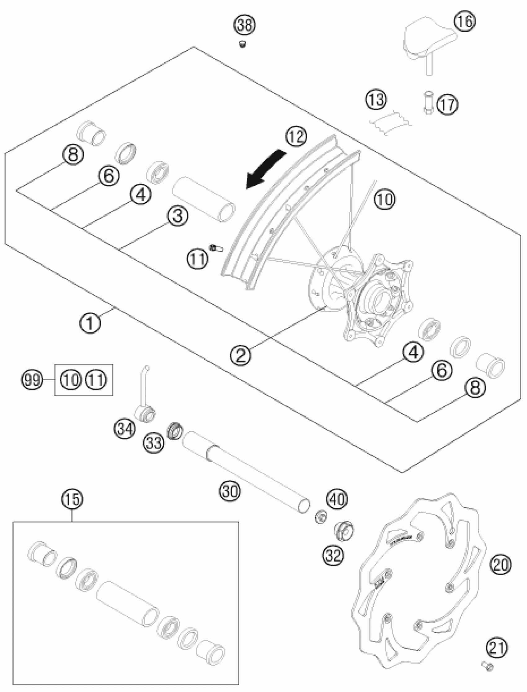 KTM 250 XCF-W SIX DAYS 2011 FRONT WHEEL Diagram