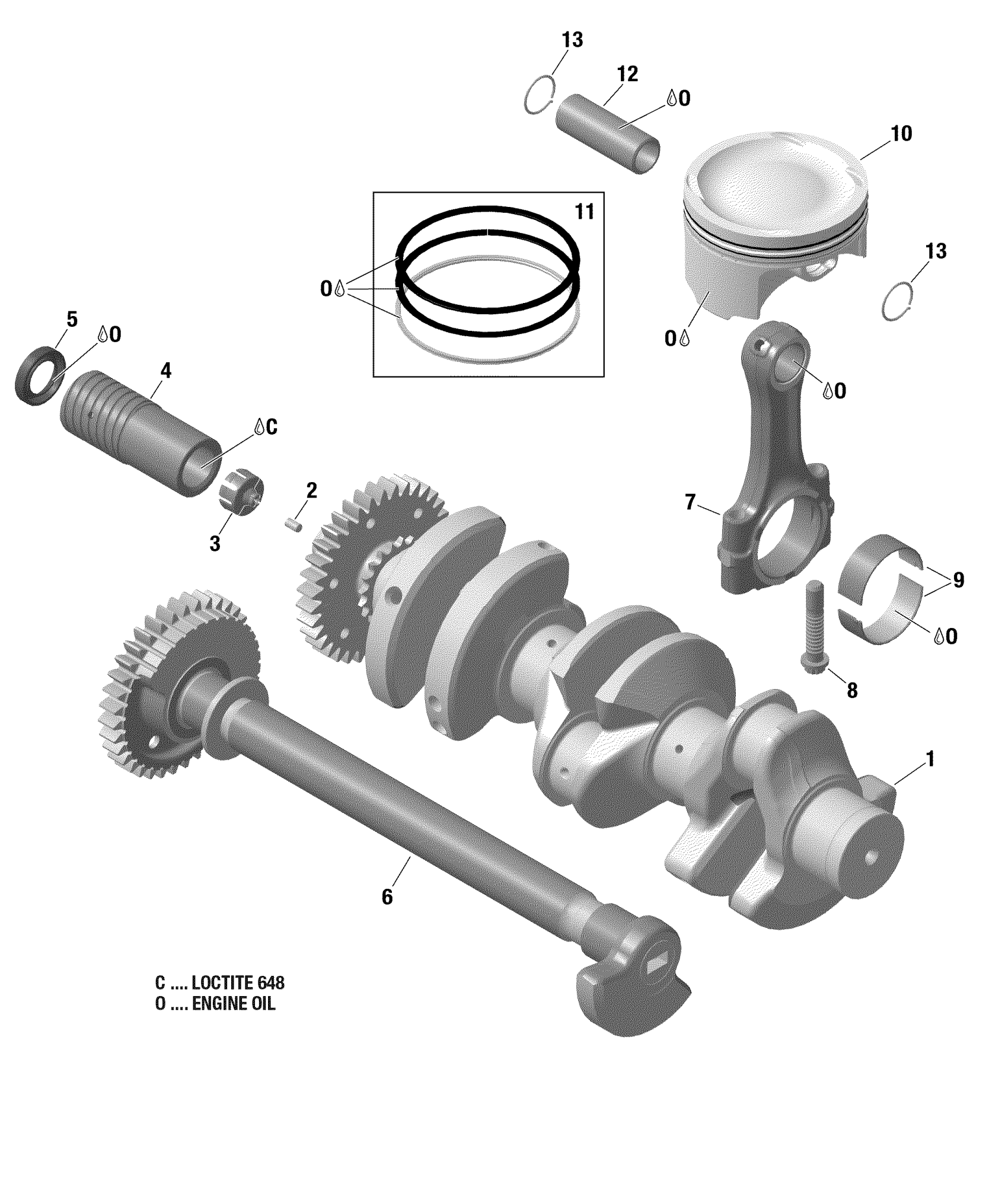Sea-doo 3- GTX 300, 2018 01- Crankshaft, Pistons And Balance Shaft Diagram