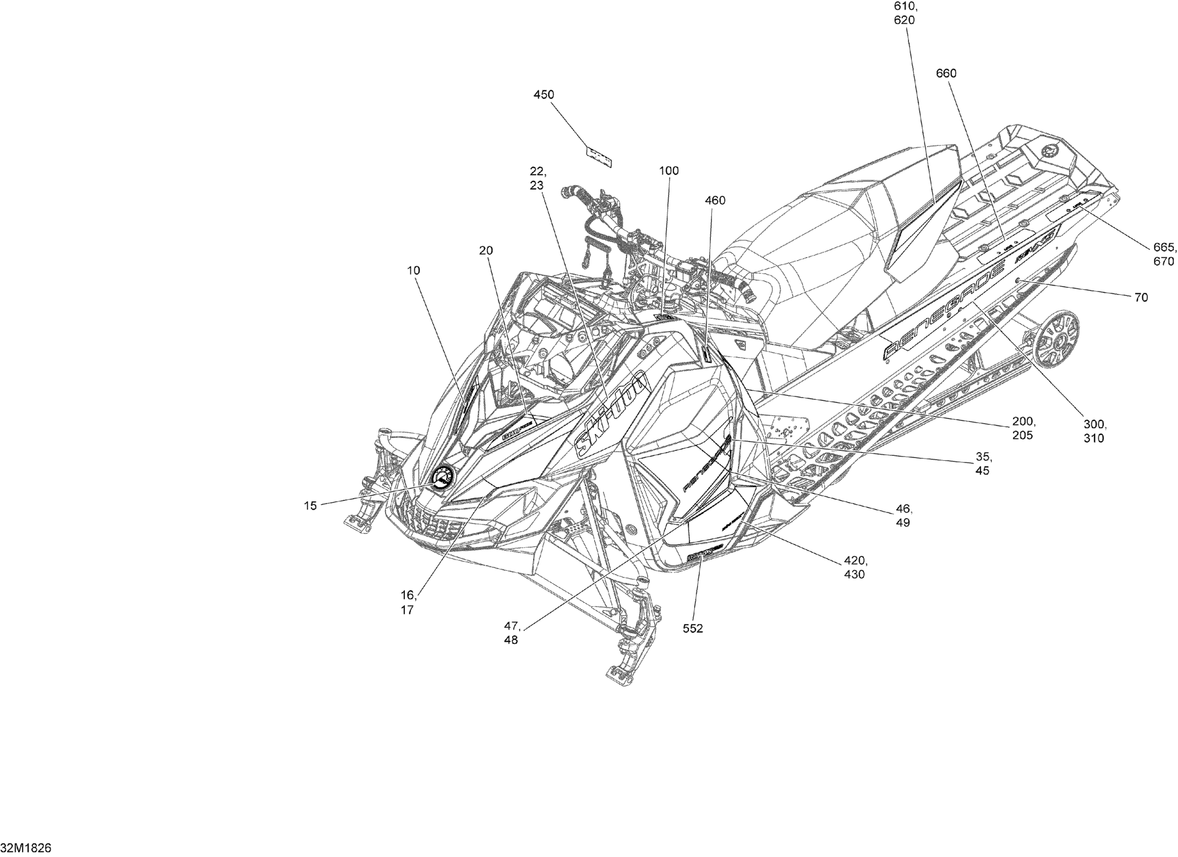 Ski-Doo RENEGADE 600 ACE, 2018 Decals Renegade - 600 ACE - Package Sport Diagram