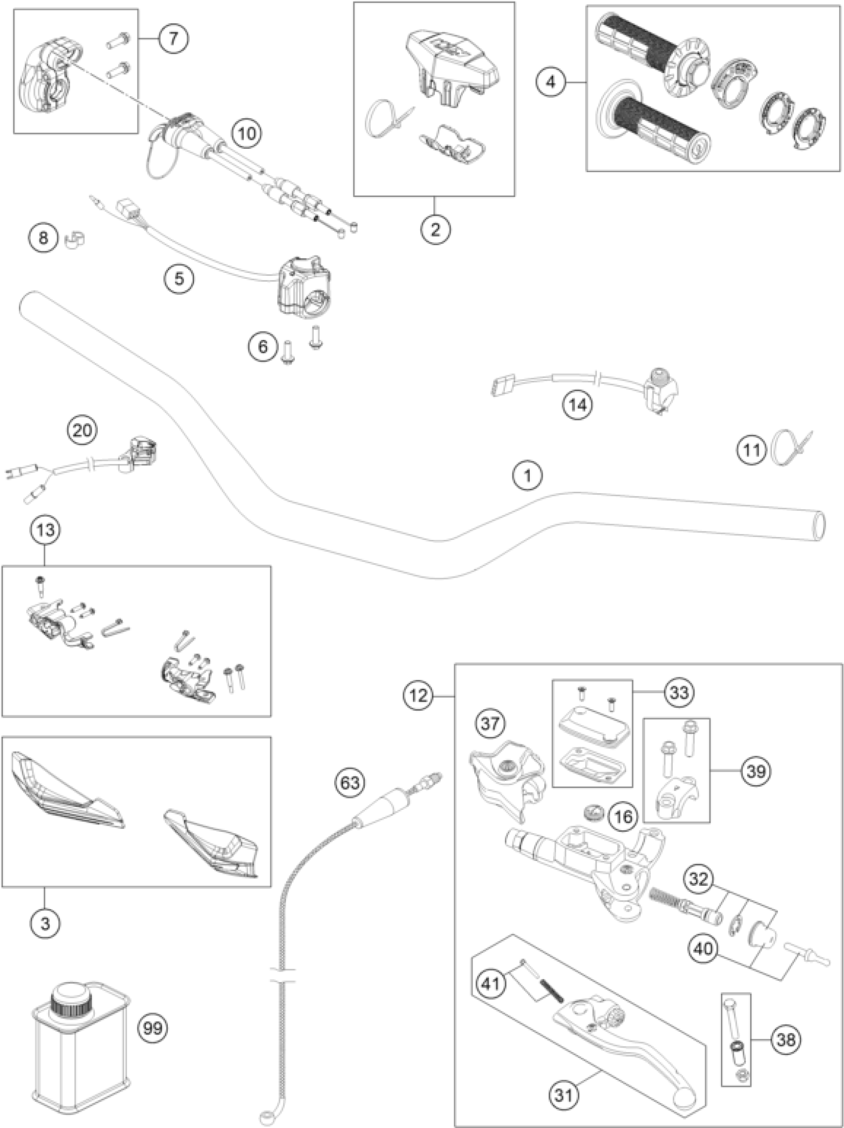 KTM 300 EXC SIX DAYS CKD 2023 HANDLEBAR, CONTROLS Diagram