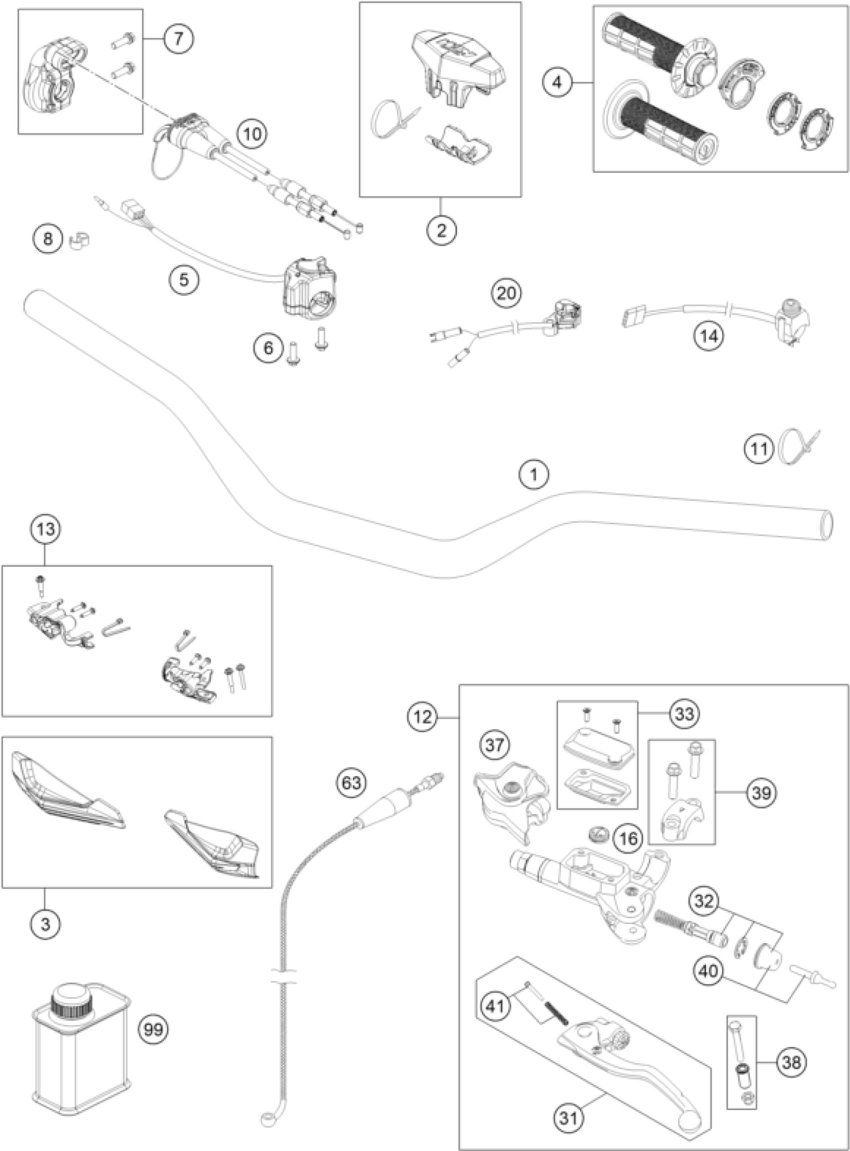 KTM 300 EXC SIX DAYS TPI CKD 2021 HANDLEBAR, CONTROLS Diagram