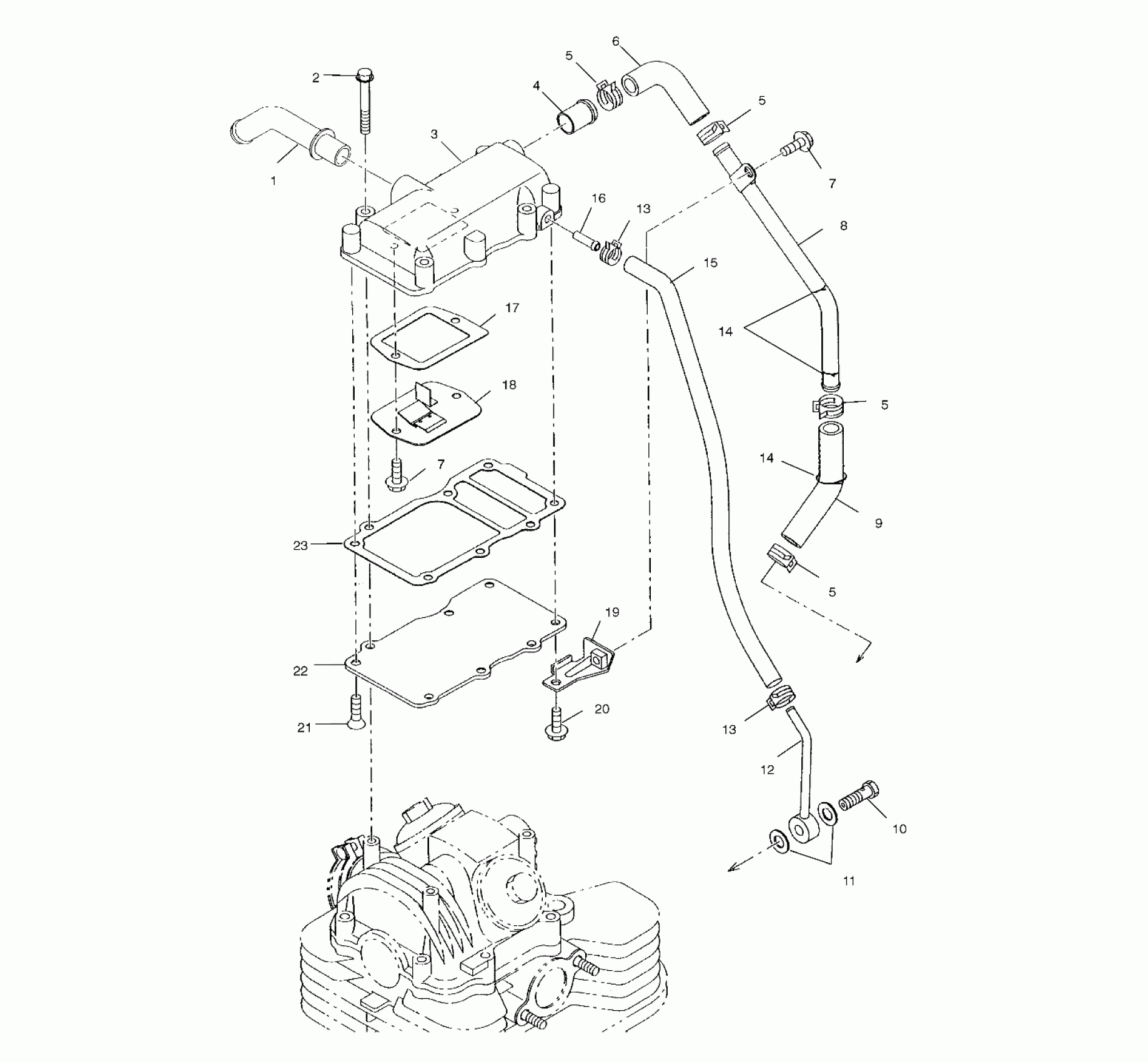 BREATHER BOX,ASM. Substituted by 3086808 (See Footnote) (Incl. 4,16-20, 21-23)(If built before 3/1/99)