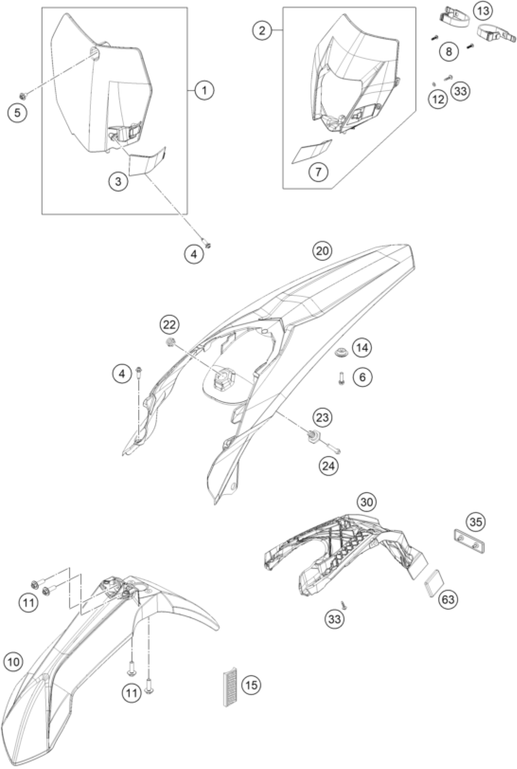 KTM 350 EXC-F 2016 MASK, FENDERS Diagram