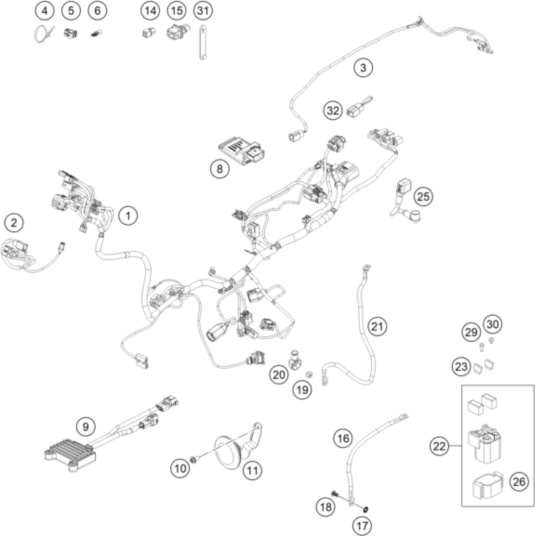 KTM 350 EXC-F 2026 WIRING HARNESS Diagram