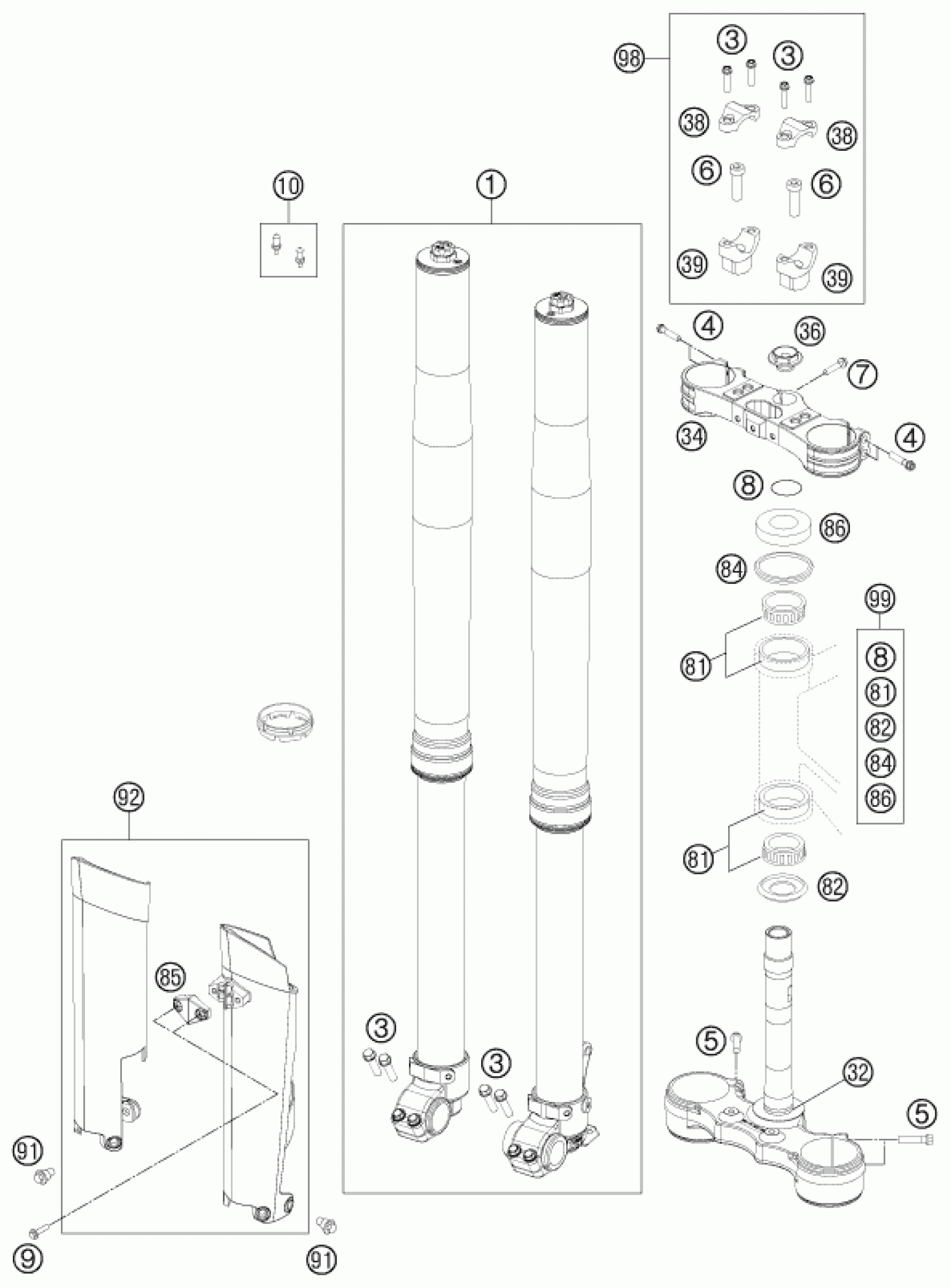 FRONT FORK, TRIPLE CLAMP