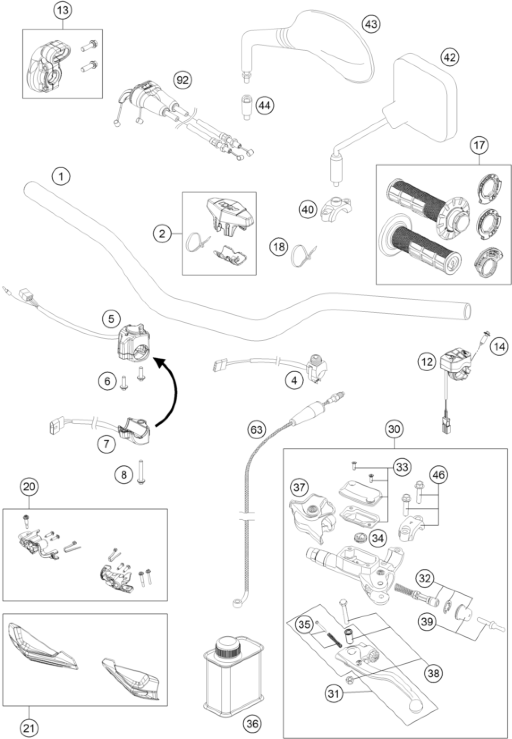 KTM 350 EXC-F Six Days CKD 2018 HANDLEBAR, CONTROLS Diagram