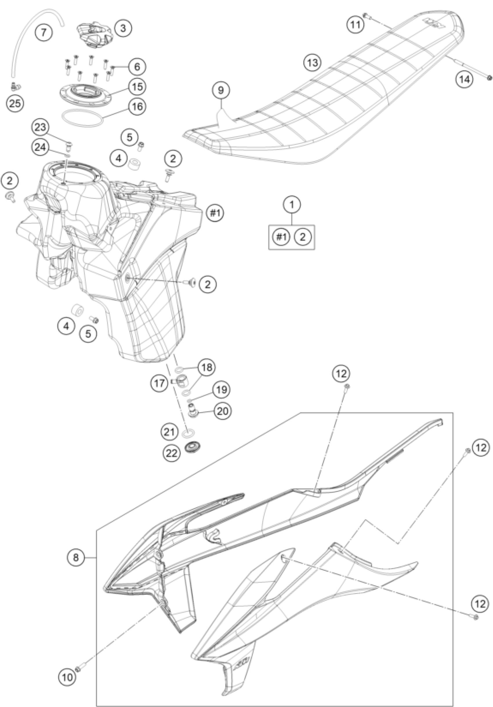 KTM 350 XC-F KAILUB RUSSELL 2021 TANK, SEAT Diagram