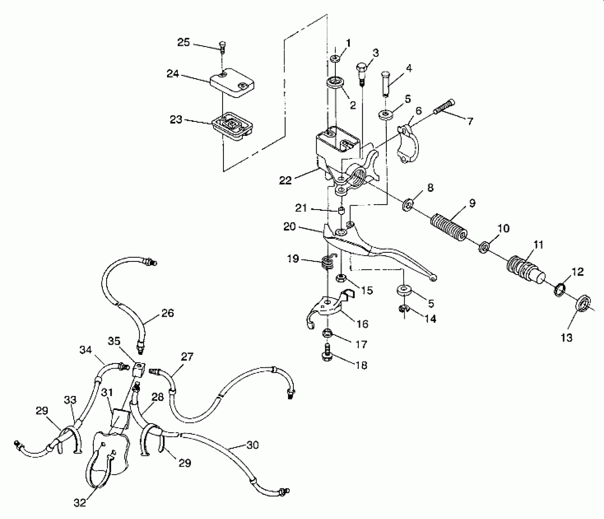 Polaris 350L 4X4 - W938139 CONTROLS - MASTER CYLINDER/BRAKE LINE 4X4 350L W938139 (4924052405021A) Diagram