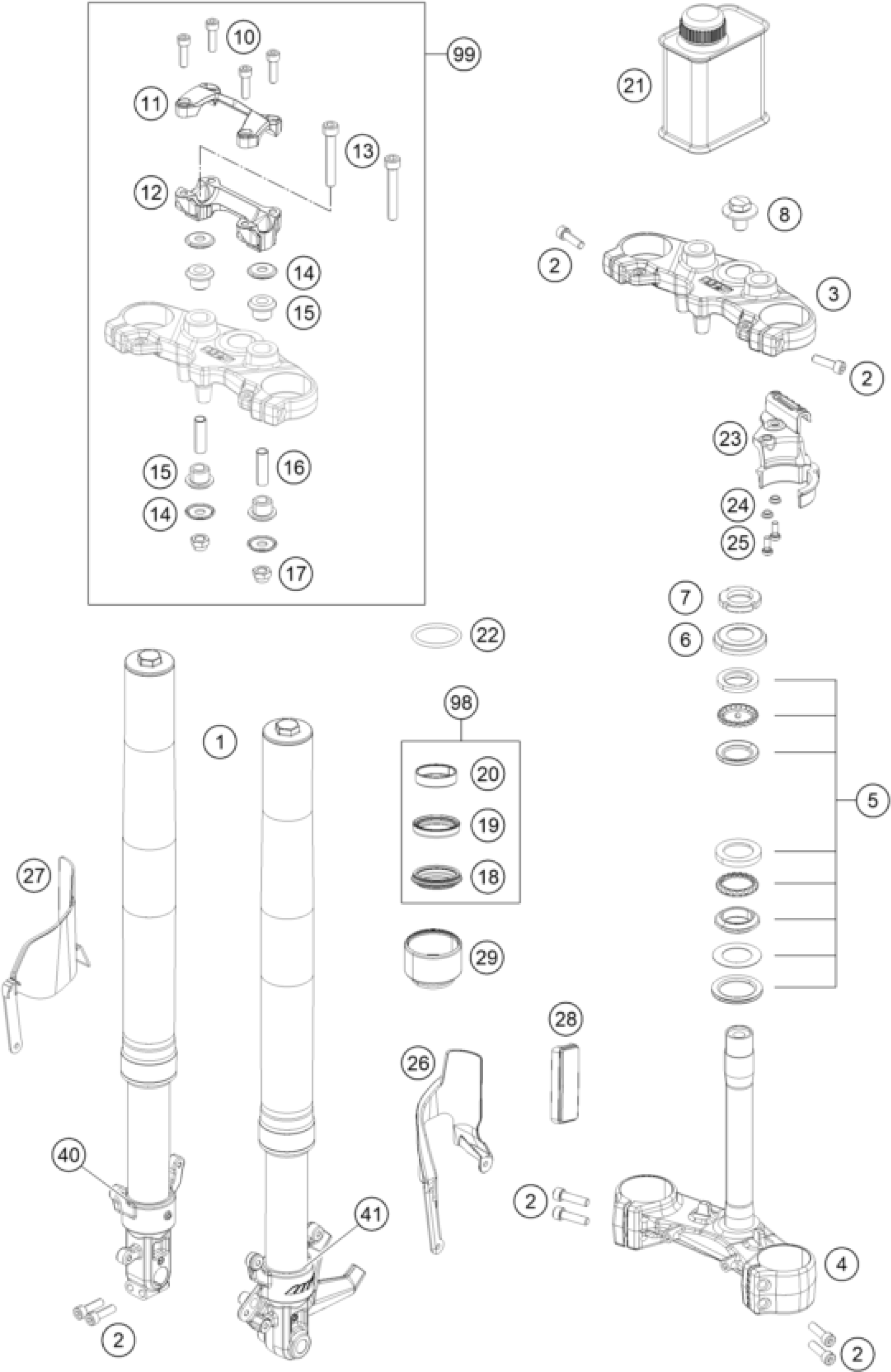 FRONT FORK, TRIPLE CLAMP