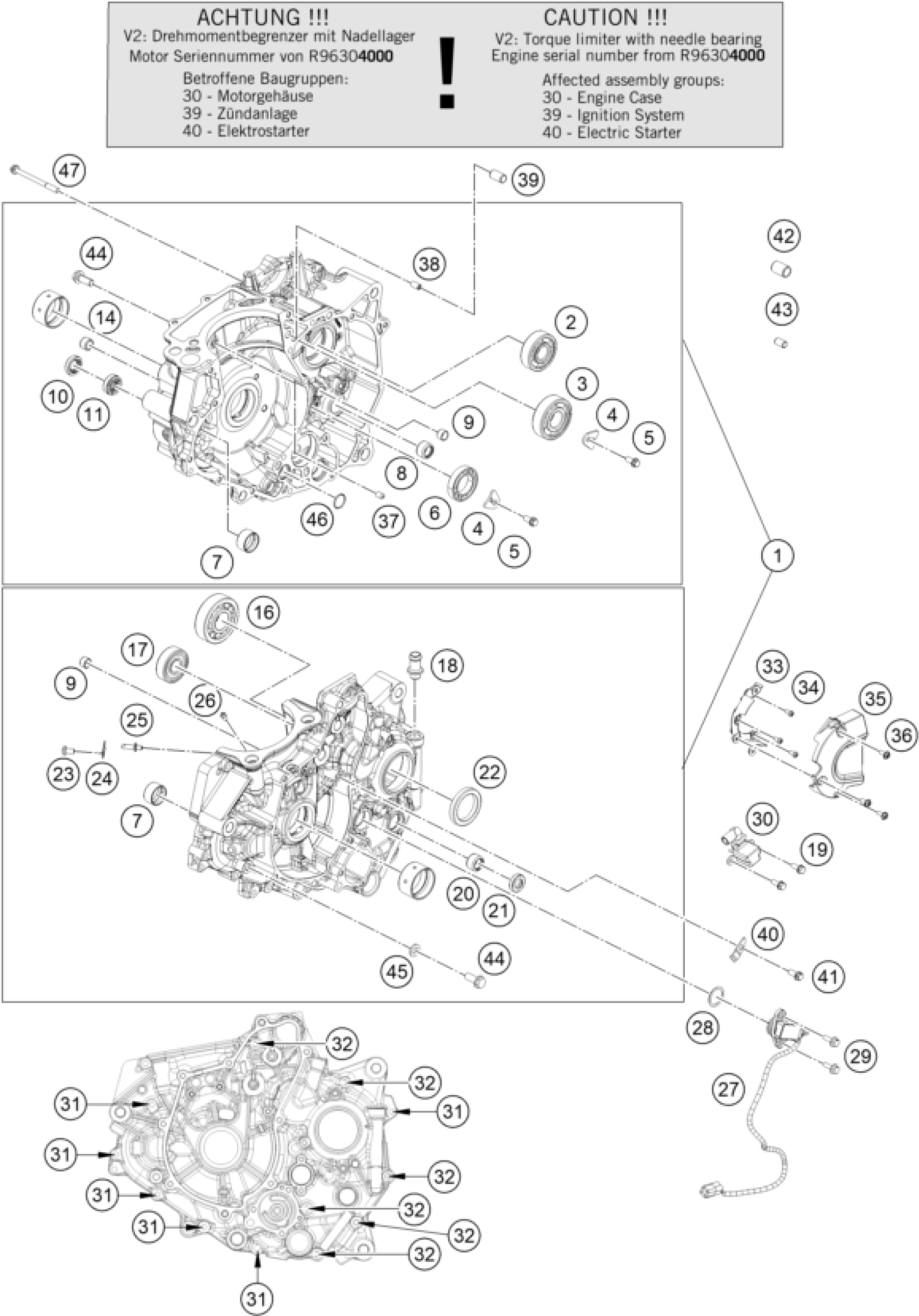 KTM 390 DUKE KTMR2R, blue 2024 ENGINE CASE Diagram