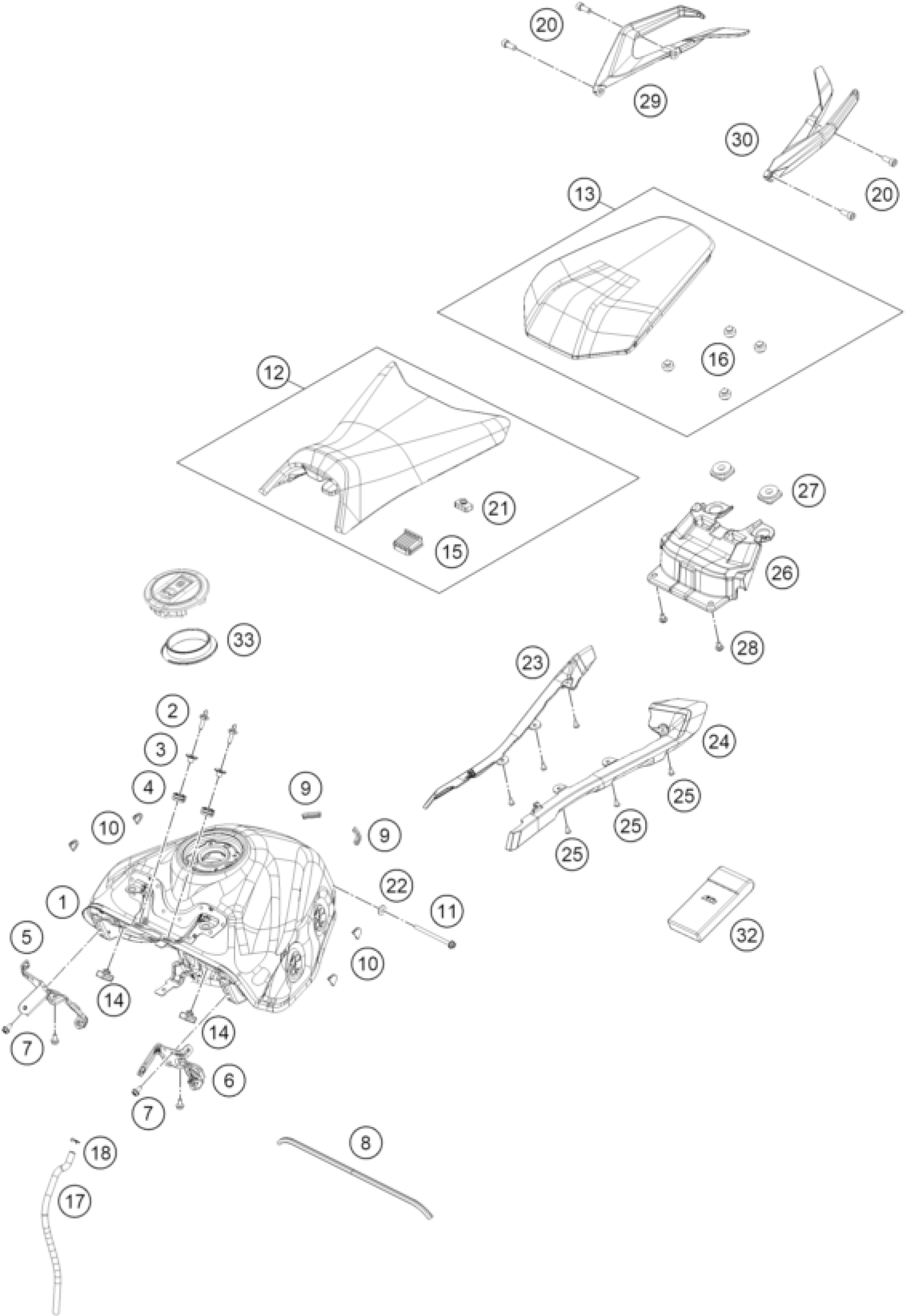 KTM 390 DUKE KTMR2R, orange 2024 TANK, SEAT Diagram