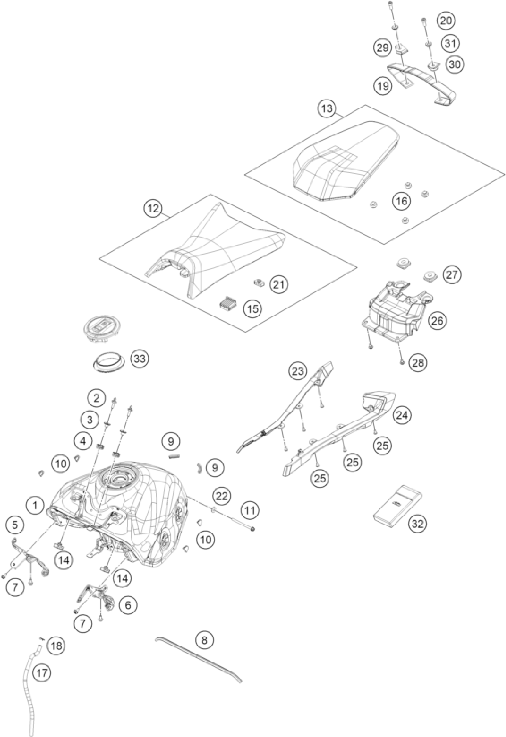 KTM 390 DUKE, orange 2024 TANK, SEAT Diagram