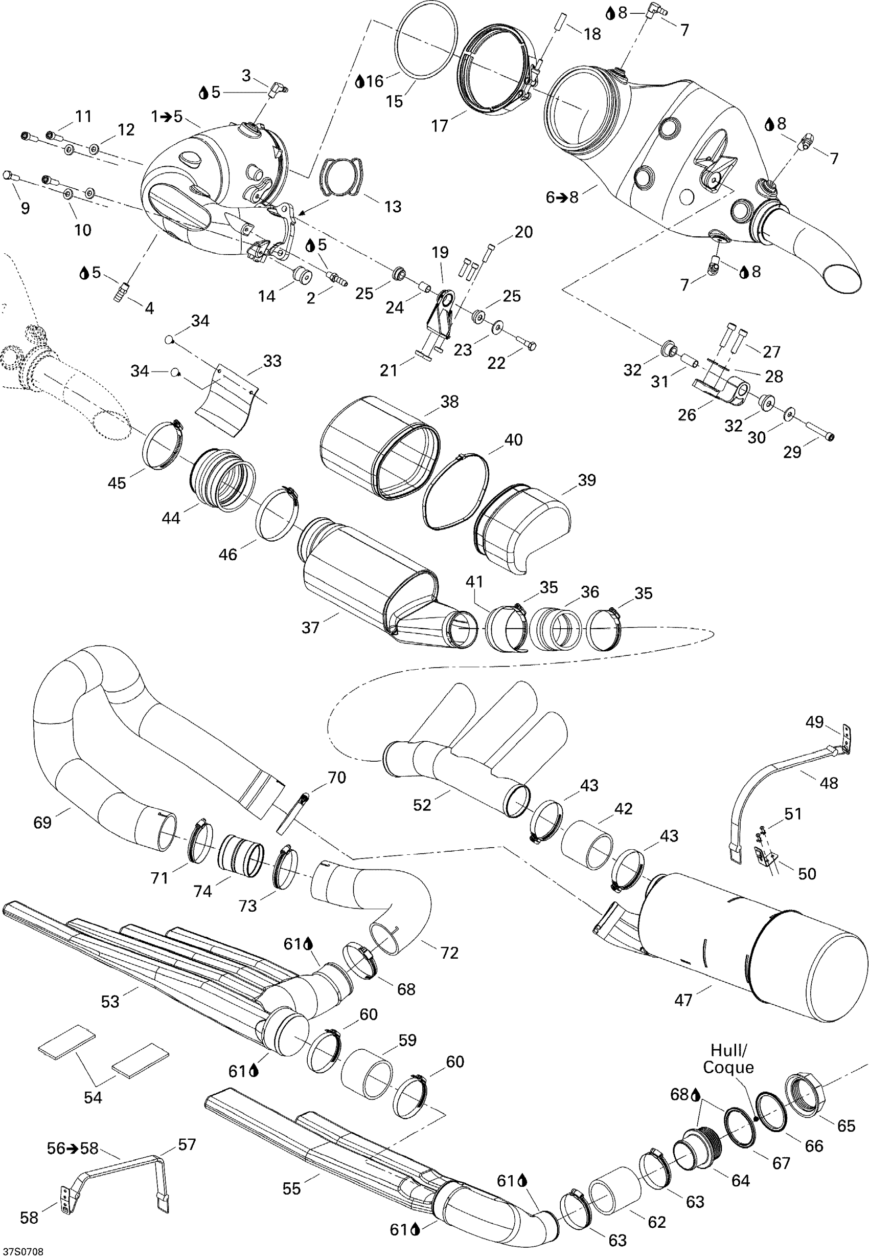 Sea-doo 3D 947 DI, 2007 01- Exhaust System Diagram