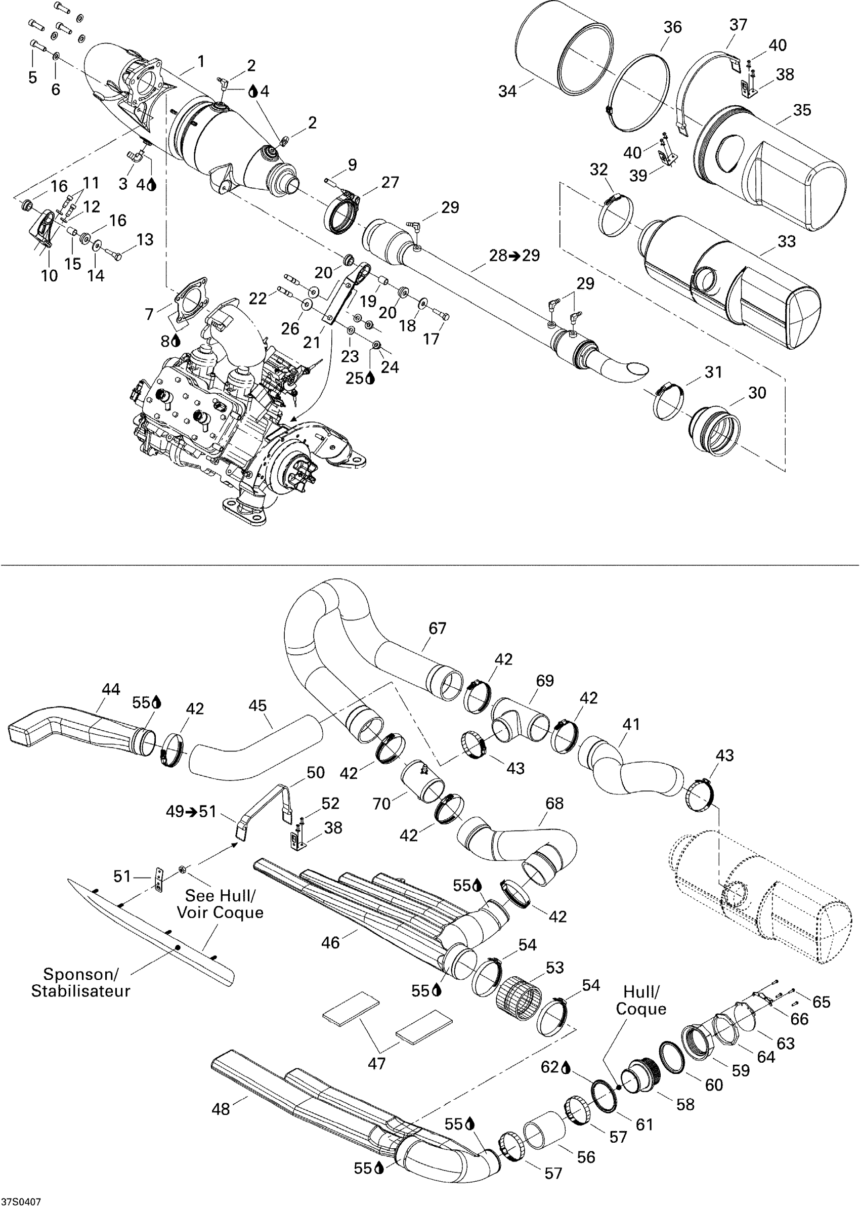 Sea-doo 3D RFI, 2004 01- Exhaust System Diagram