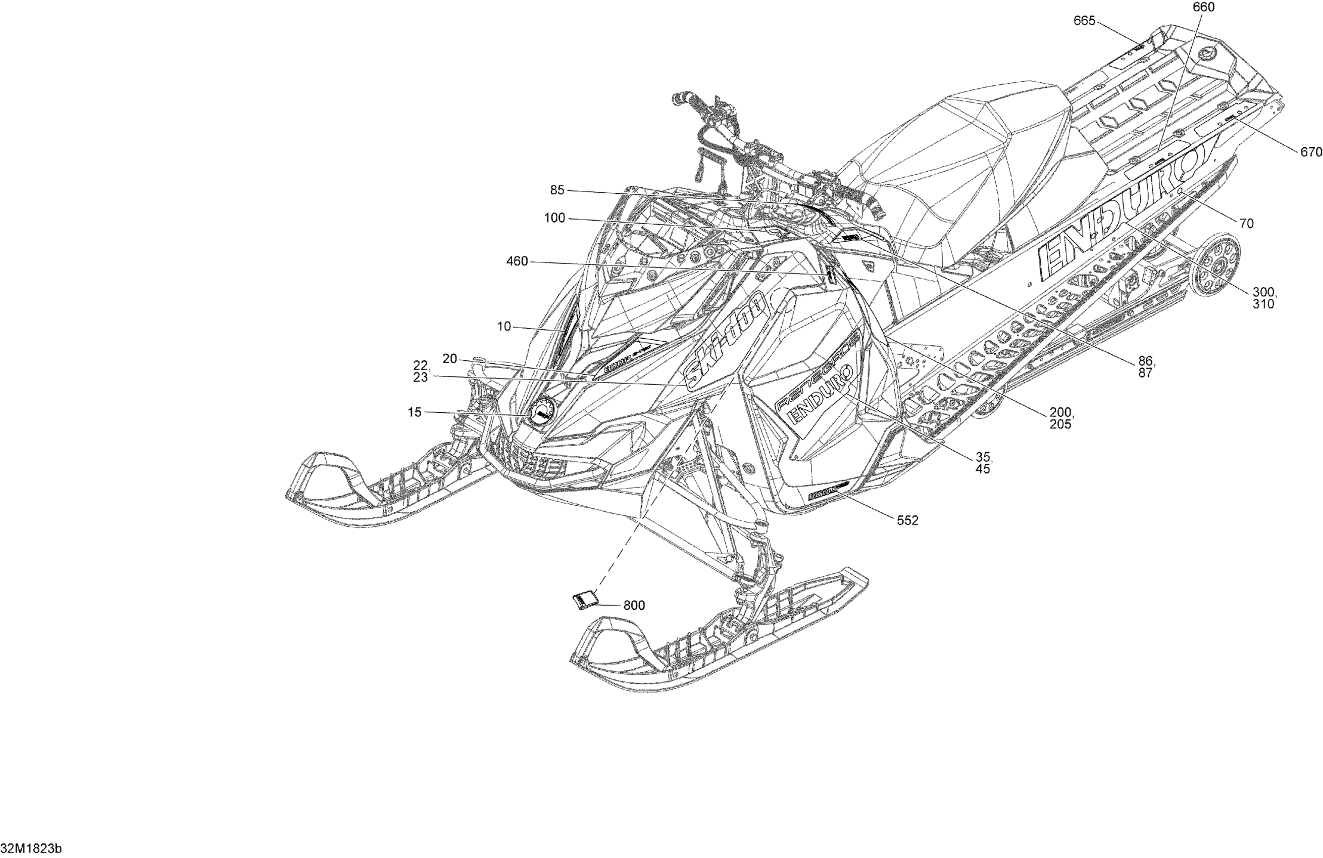 Ski-Doo 4- RENEGADE 800R E-TEC, 2018 09- Decals Renegade - 800R E-TEC - Package Enduro Diagram