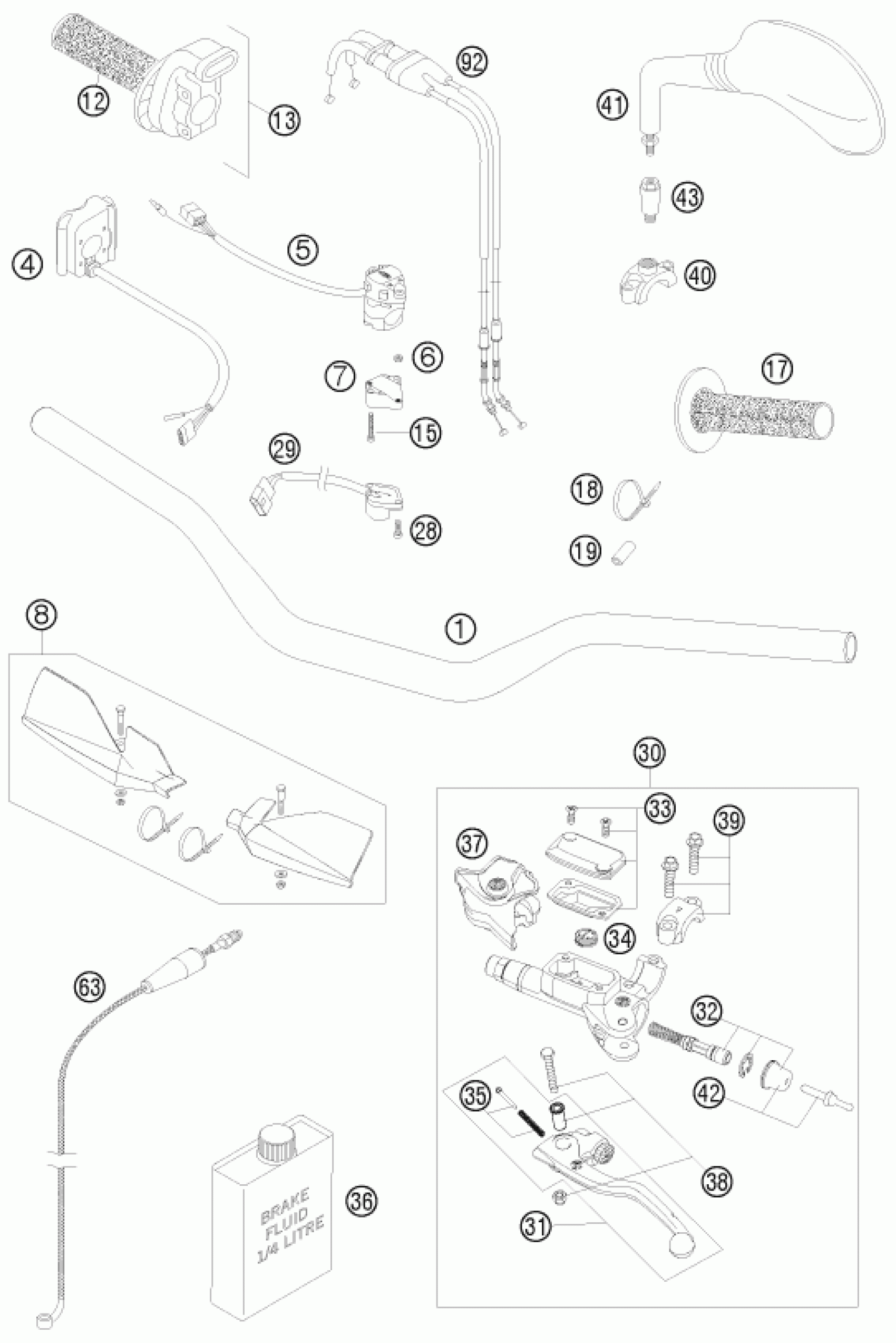 KTM 400 EXC 2009 HANDLEBAR, CONTROLS Diagram