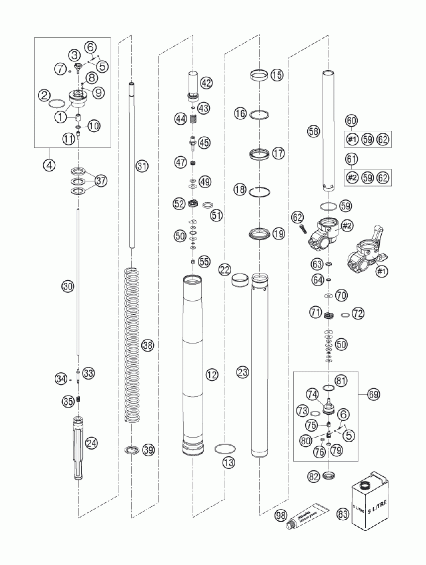 KTM 400 LS-E/ MIL 2005 FRONT FORK DISASSEMBLED Diagram