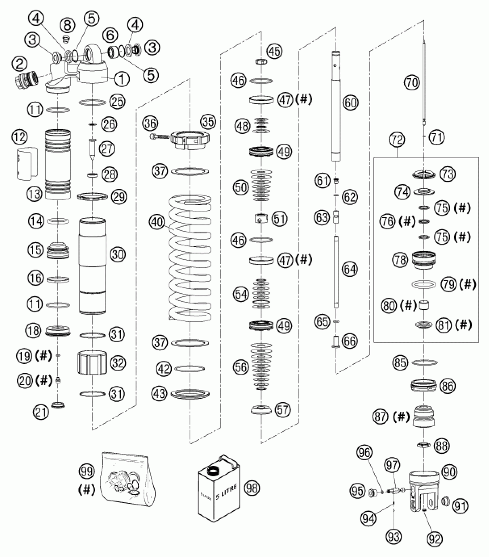 KTM 400 MXC RACING 2002 SHOCK ABSORBER DISASSEMBLED Diagram