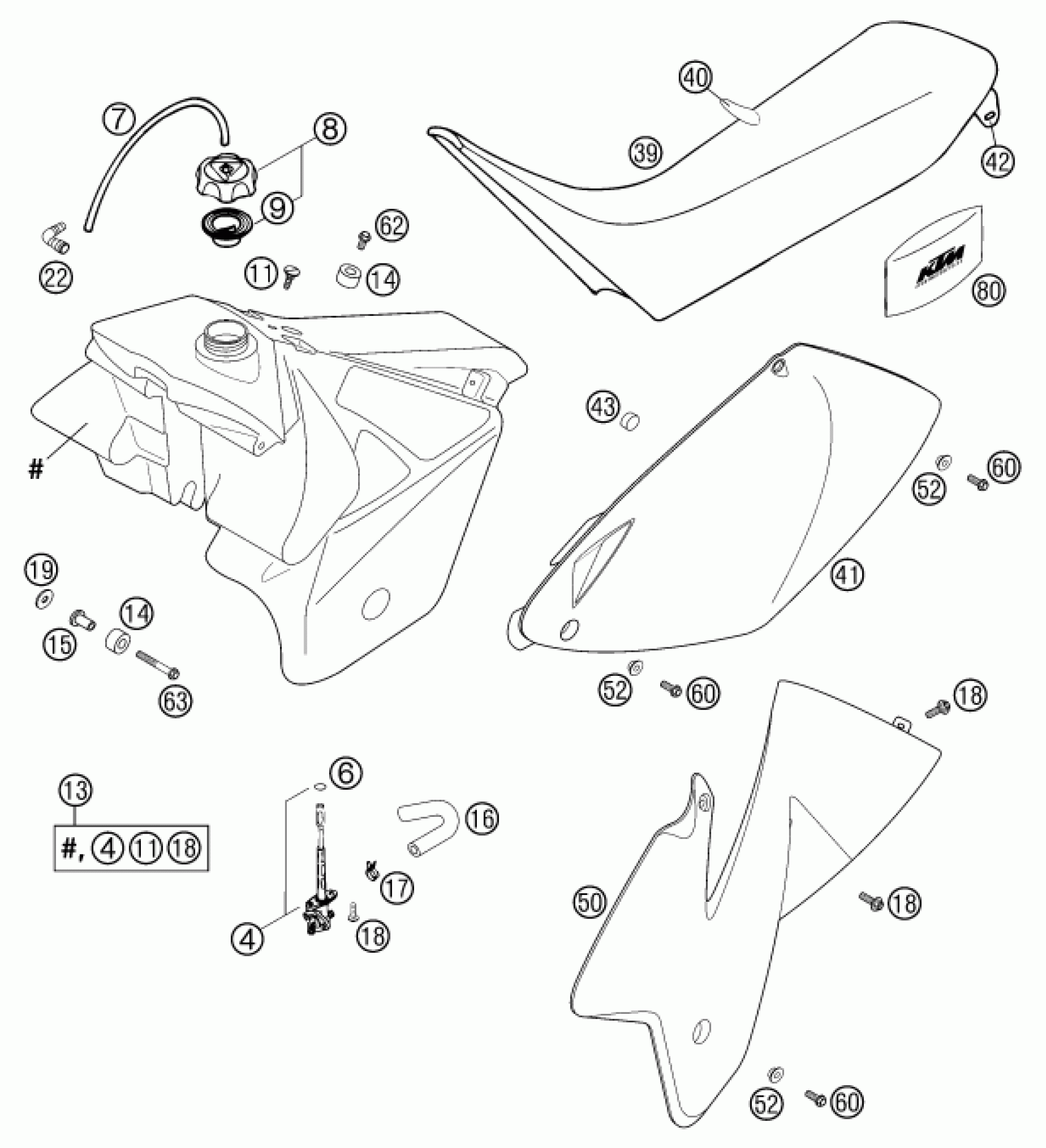 KTM 400 MXC RACING 2002 TANK, SEAT Diagram