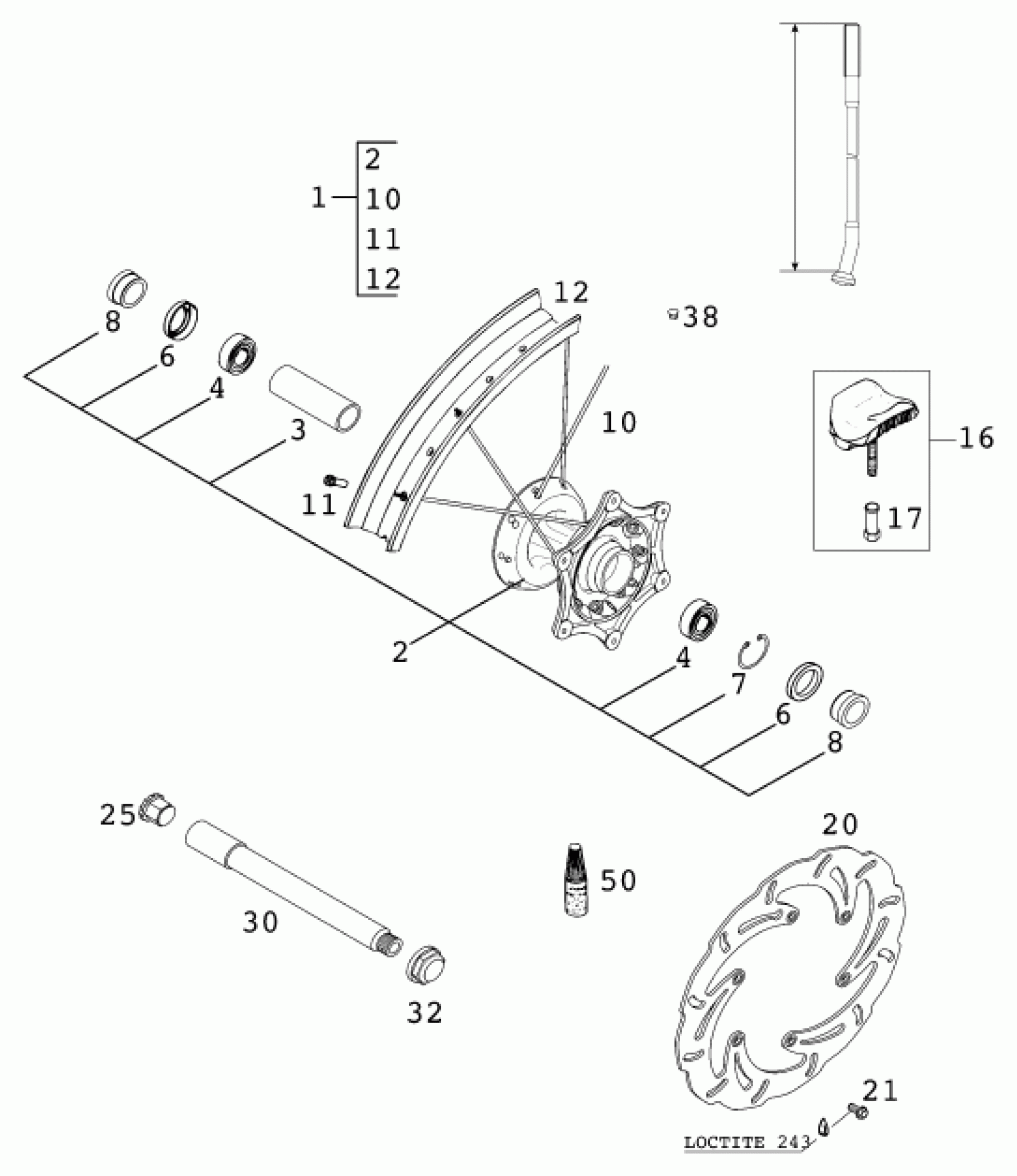 KTM 400 SX RACING 2000 FRONT WHEEL Diagram
