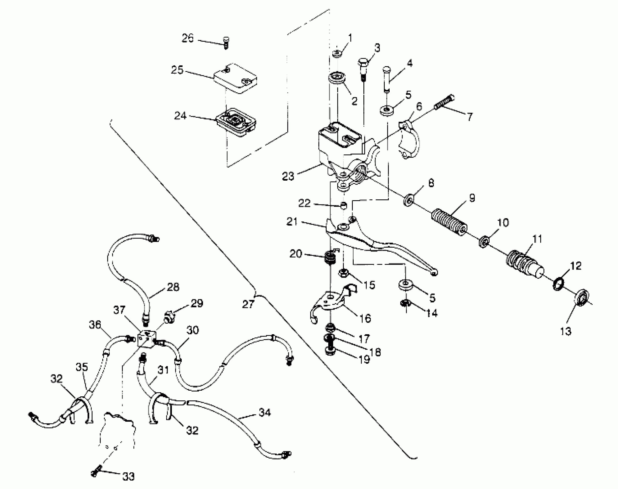 Polaris 400L 2X4 - W947540 CONTROLS - MASTER CYLINDER/BRAKE LINE 2x4 400L W947540 (4926752675B008) Diagram