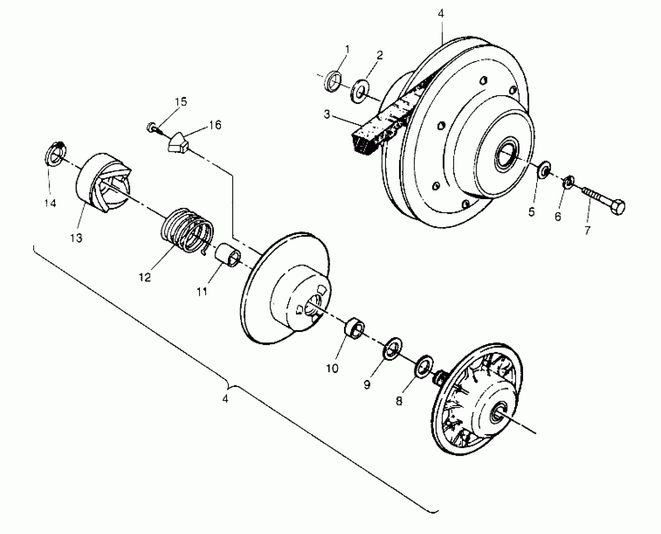Polaris 400L 2X4 - W947540 DRIVEN CLUTCH ASSEMBLY 2x4 400L W947540 (4926752675B011) Diagram