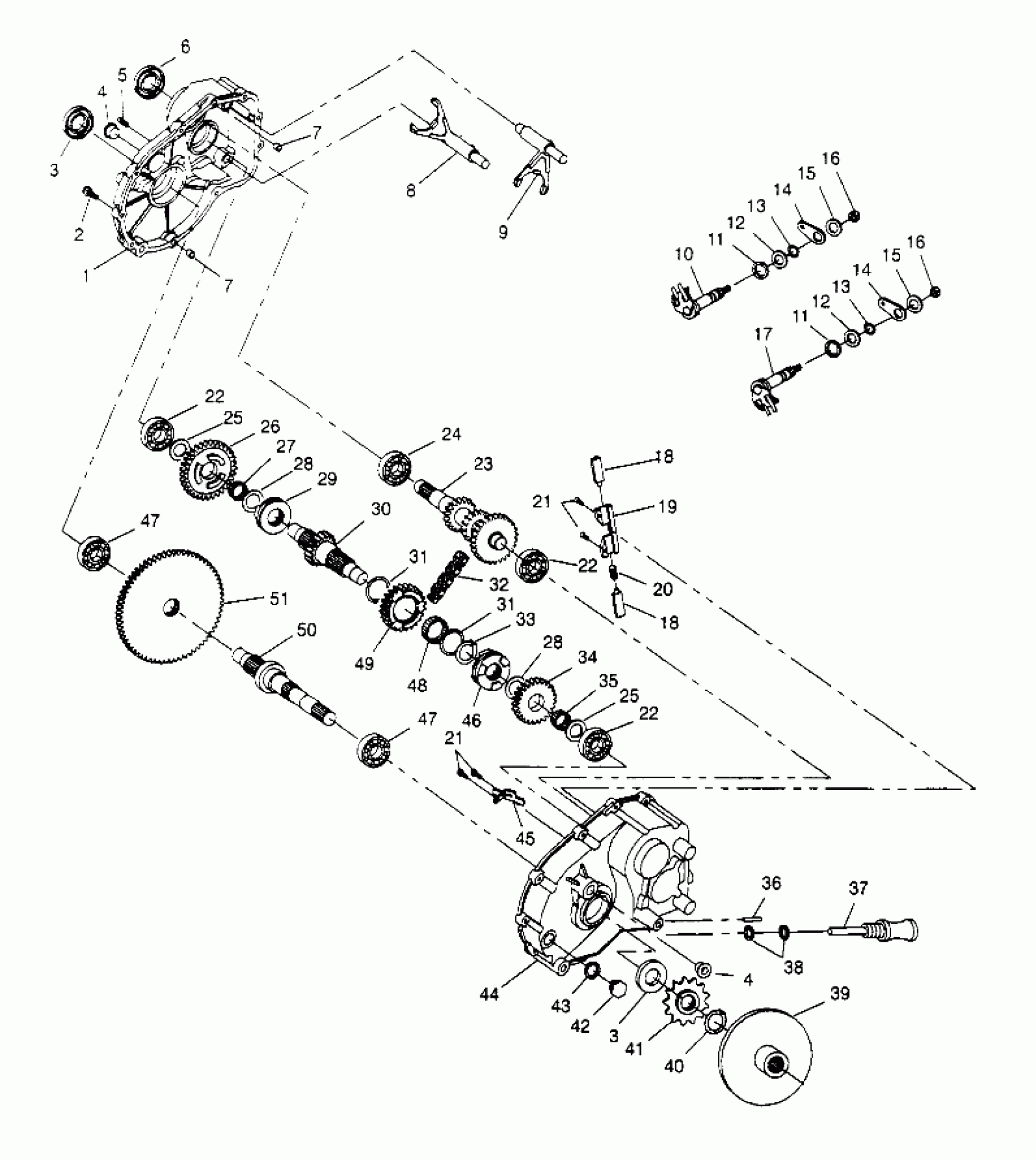 GEARCASE ASM,PRD. Substituted by 1341147 (Incl. 1-51)
