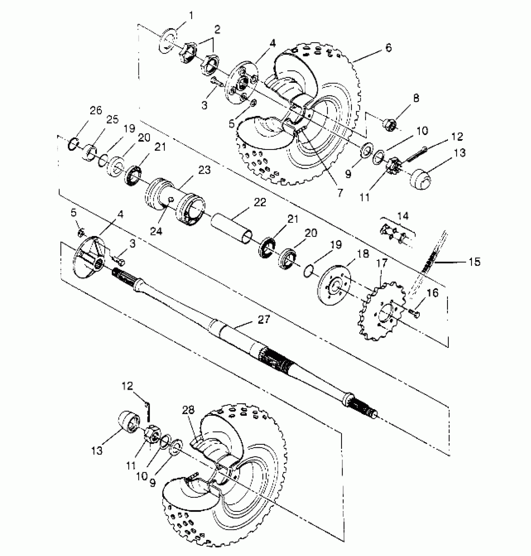 Polaris 400L 6X6 - W948740 REAR WHEEL DRIVE ASSEMBLY 6x6 400L W948740 (4926802680C011) Diagram