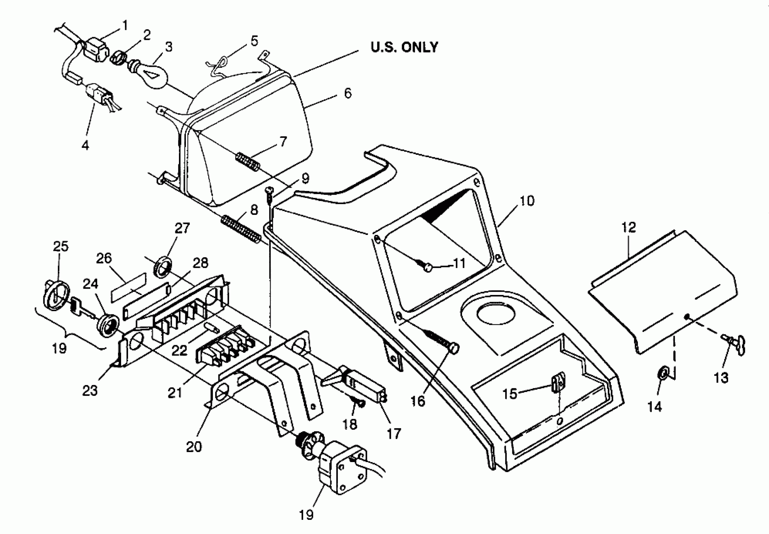 LENS ASM,PILOT LIGHT (Incl. 26) Note: Ignition key may be ordered by using the 4 digit number on the key.