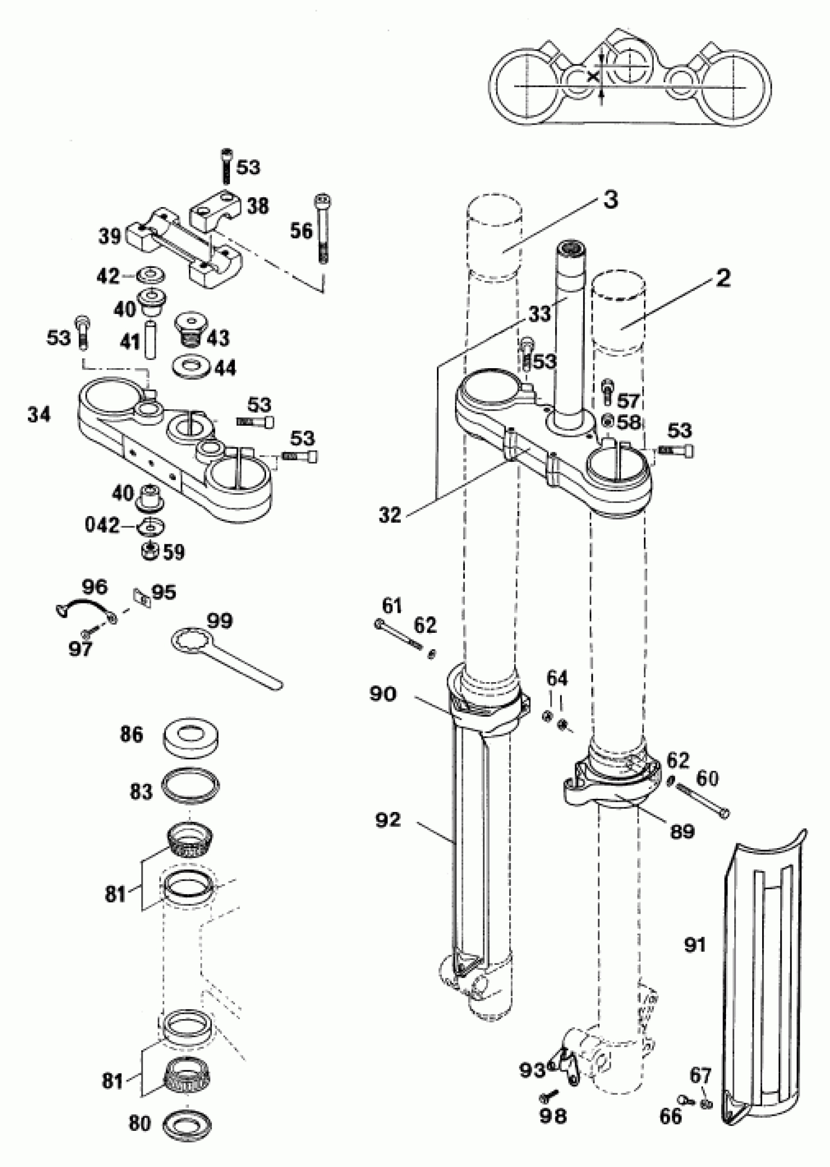 FRONT FORK, TRIPLE CLAMP