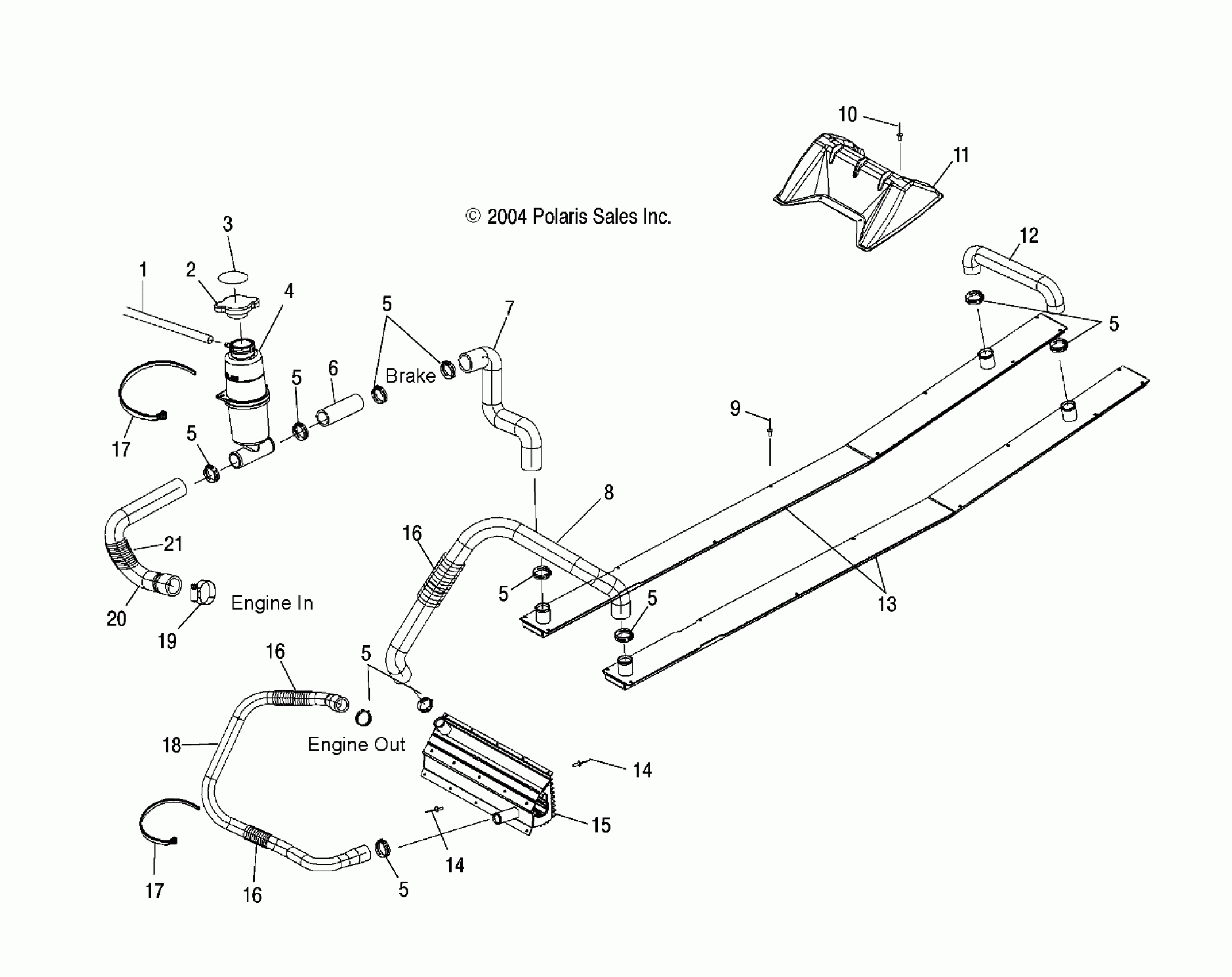 Hose, Engine Out/Center Cool In