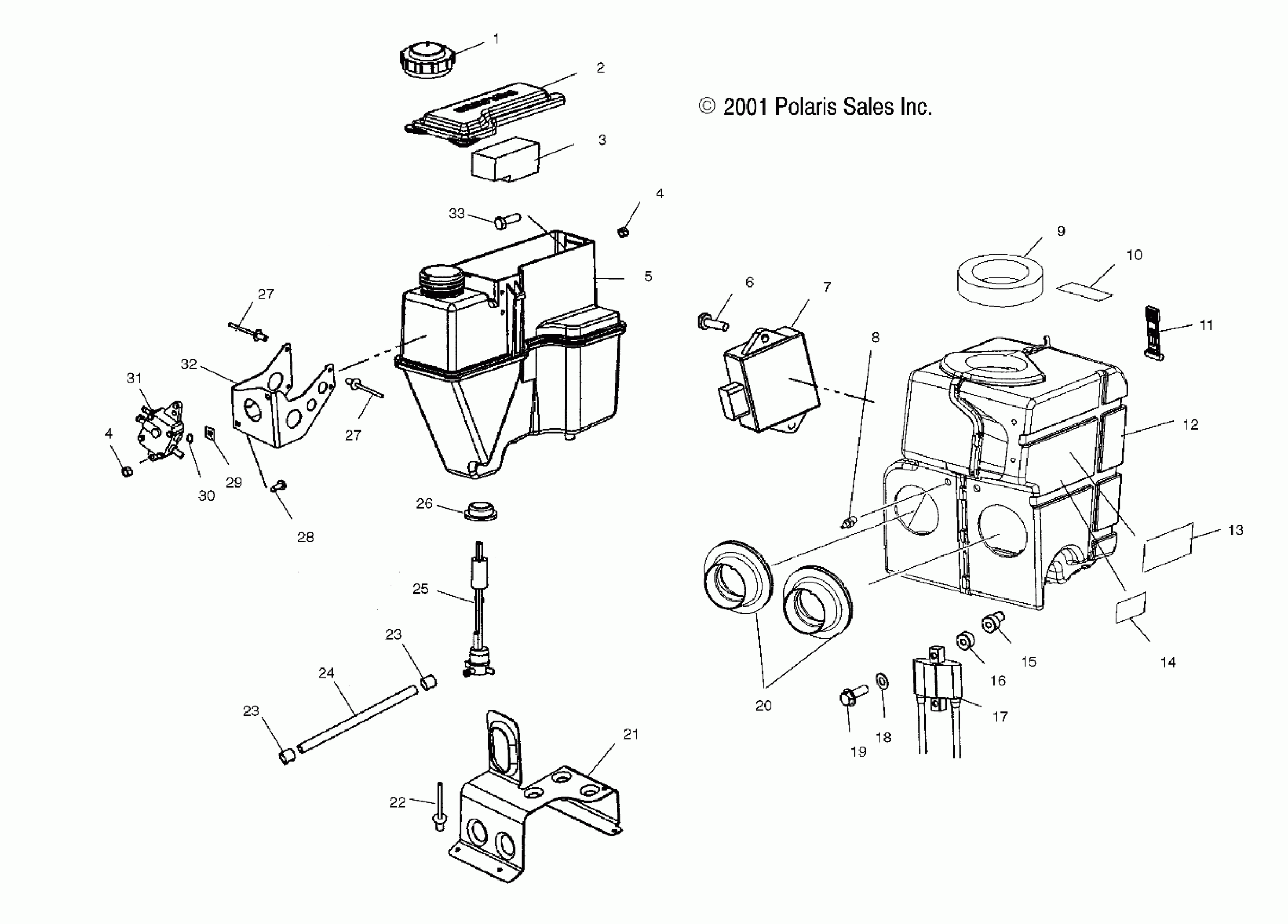 Polaris 440 PRO X FAN COOLED - S02NX4FS OIL TANK/AIR BOX - S02NX4FS (4977037703C03) Diagram