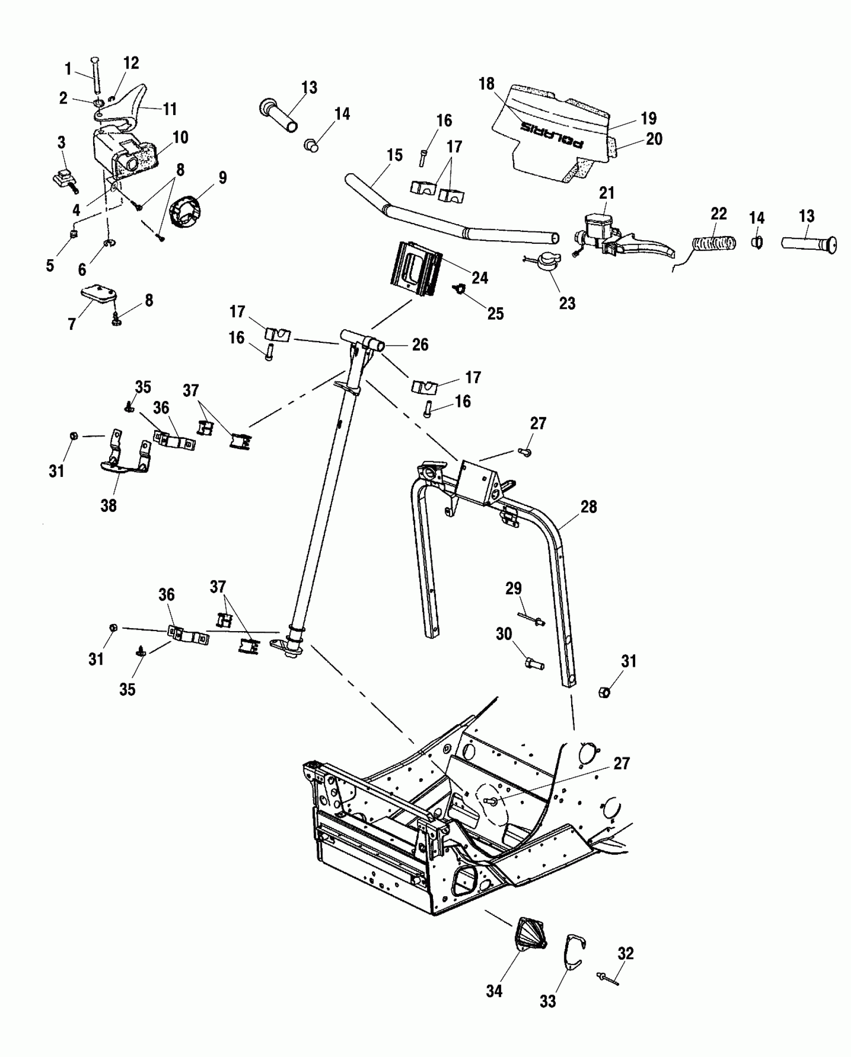 Polaris 440 PRO X FAN COOLED - S02NX4FS STEERING/HANDLEBAR - S02NX4FS (4977037703B03) Diagram