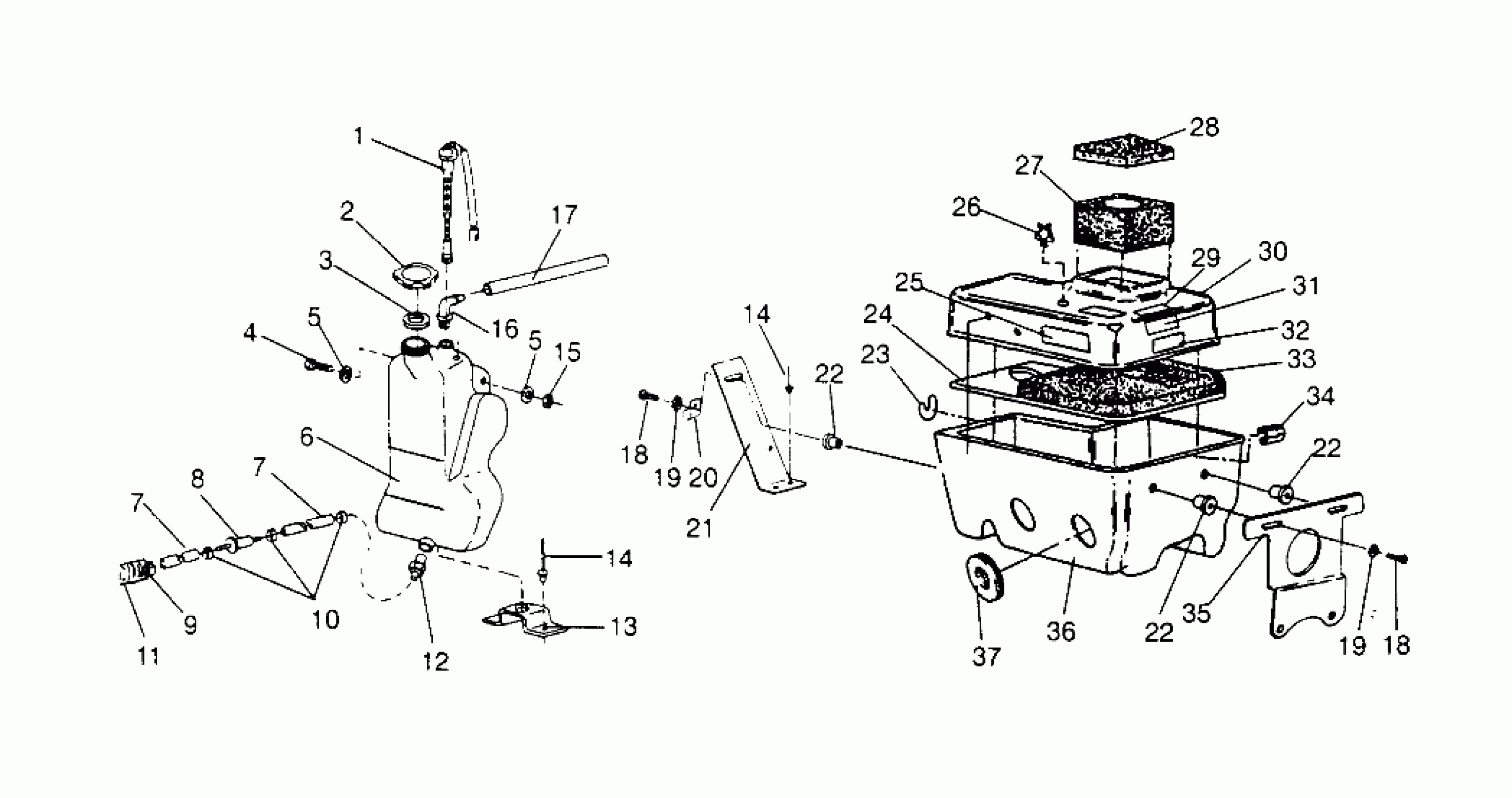 Polaris 440 XCR - 0961660 OIL TANK/AIR BOX 440 XCR 0961660 (4932113211C005) Diagram