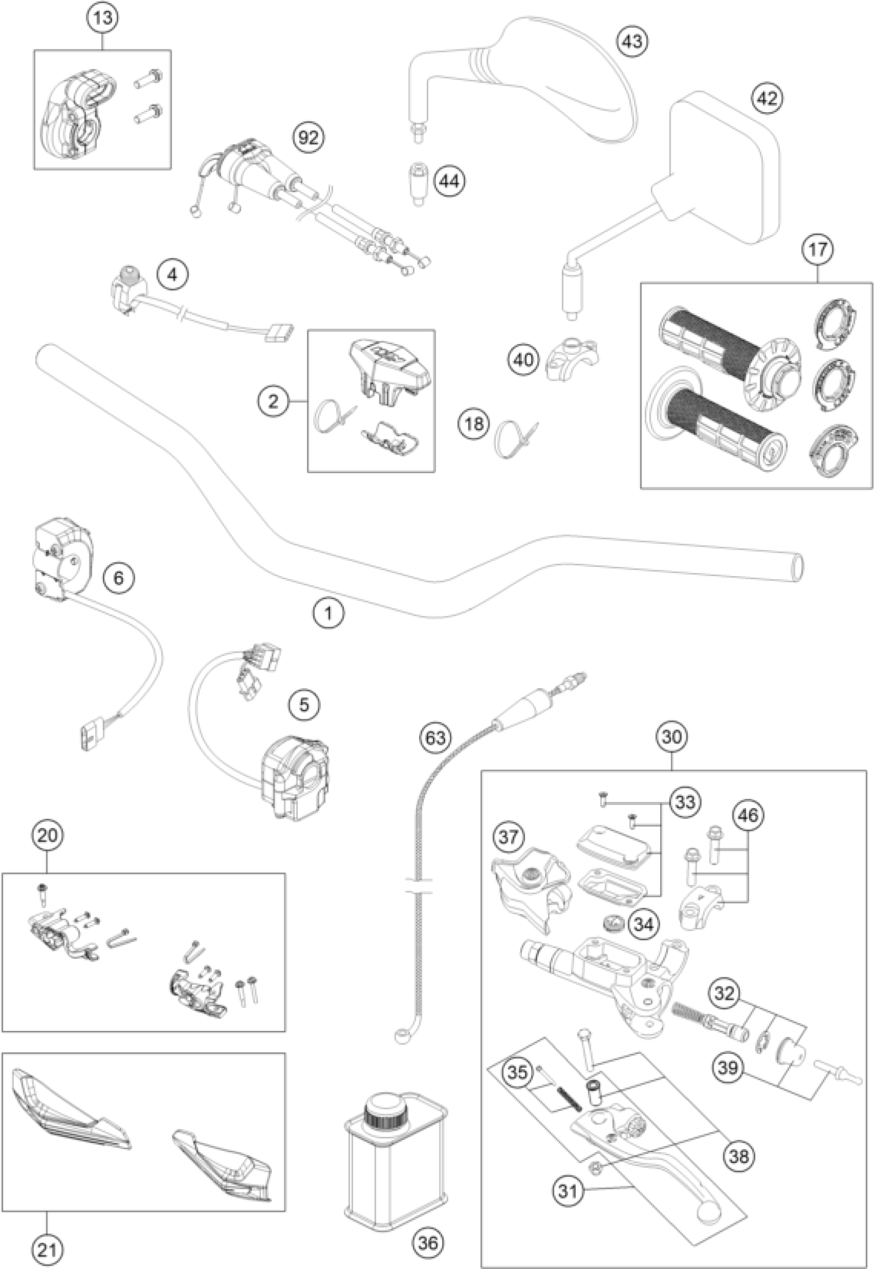 KTM 450 EXC-F Six Days 2019 HANDLEBAR, CONTROLS Diagram