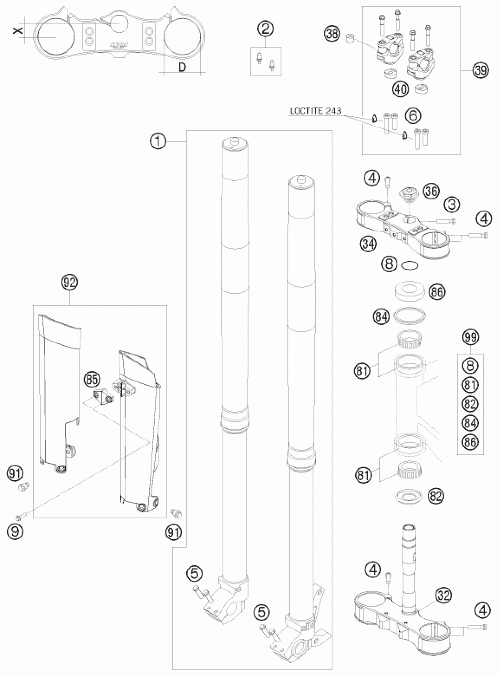 KTM 450 EXC SIX DAYS 2009 FRONT FORK, TRIPLE CLAMP Diagram