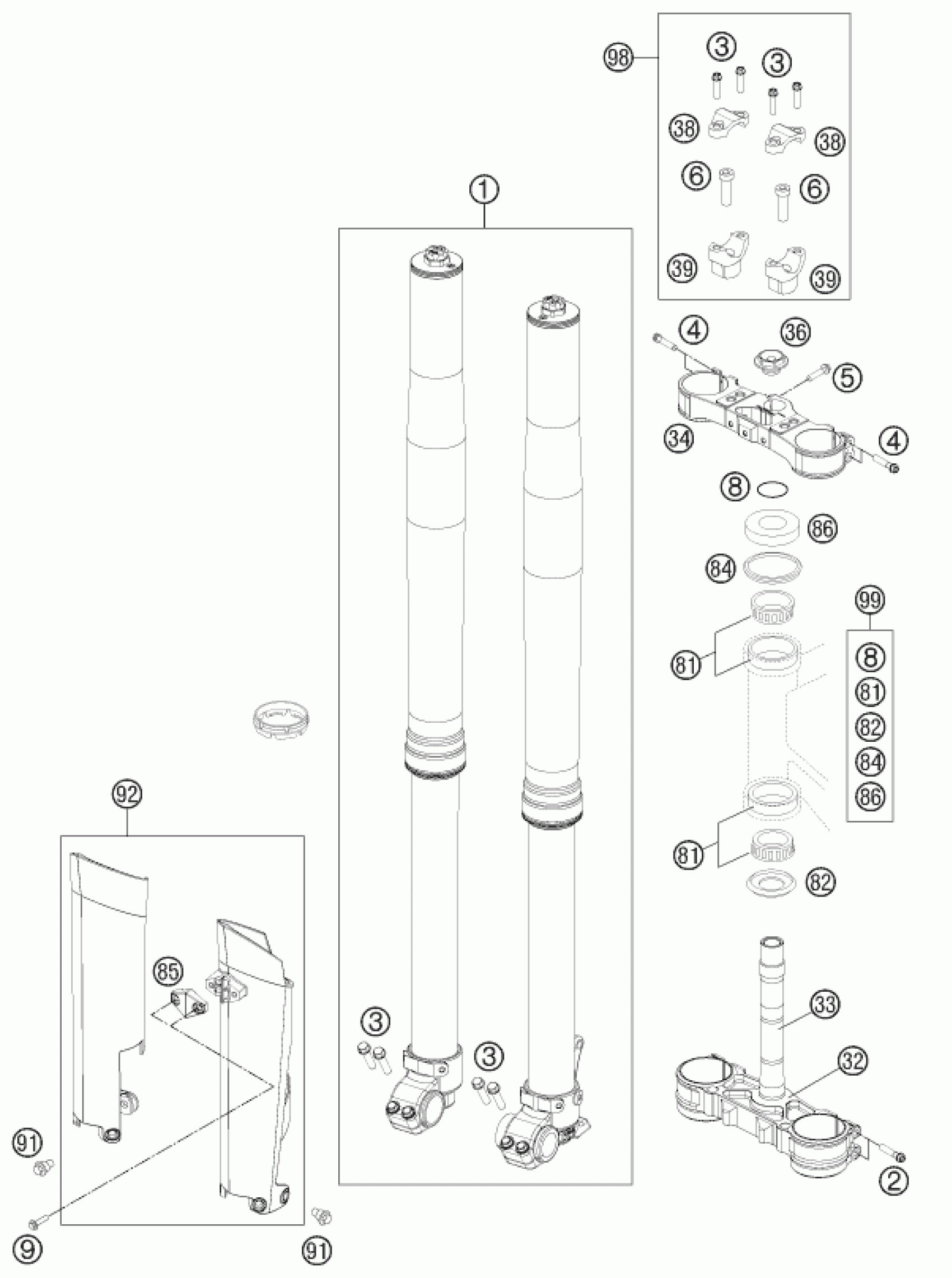 FRONT FORK, TRIPLE CLAMP
